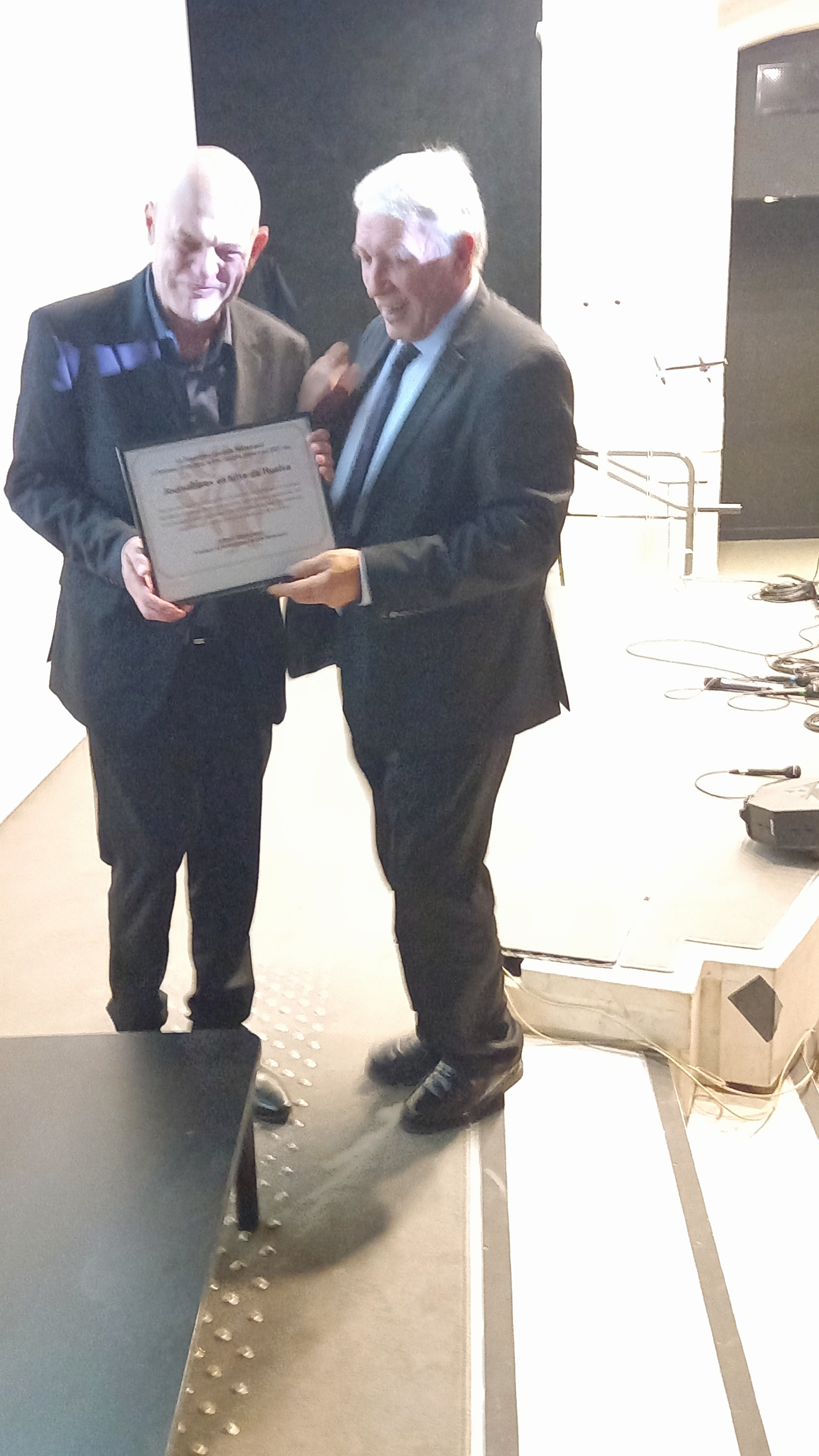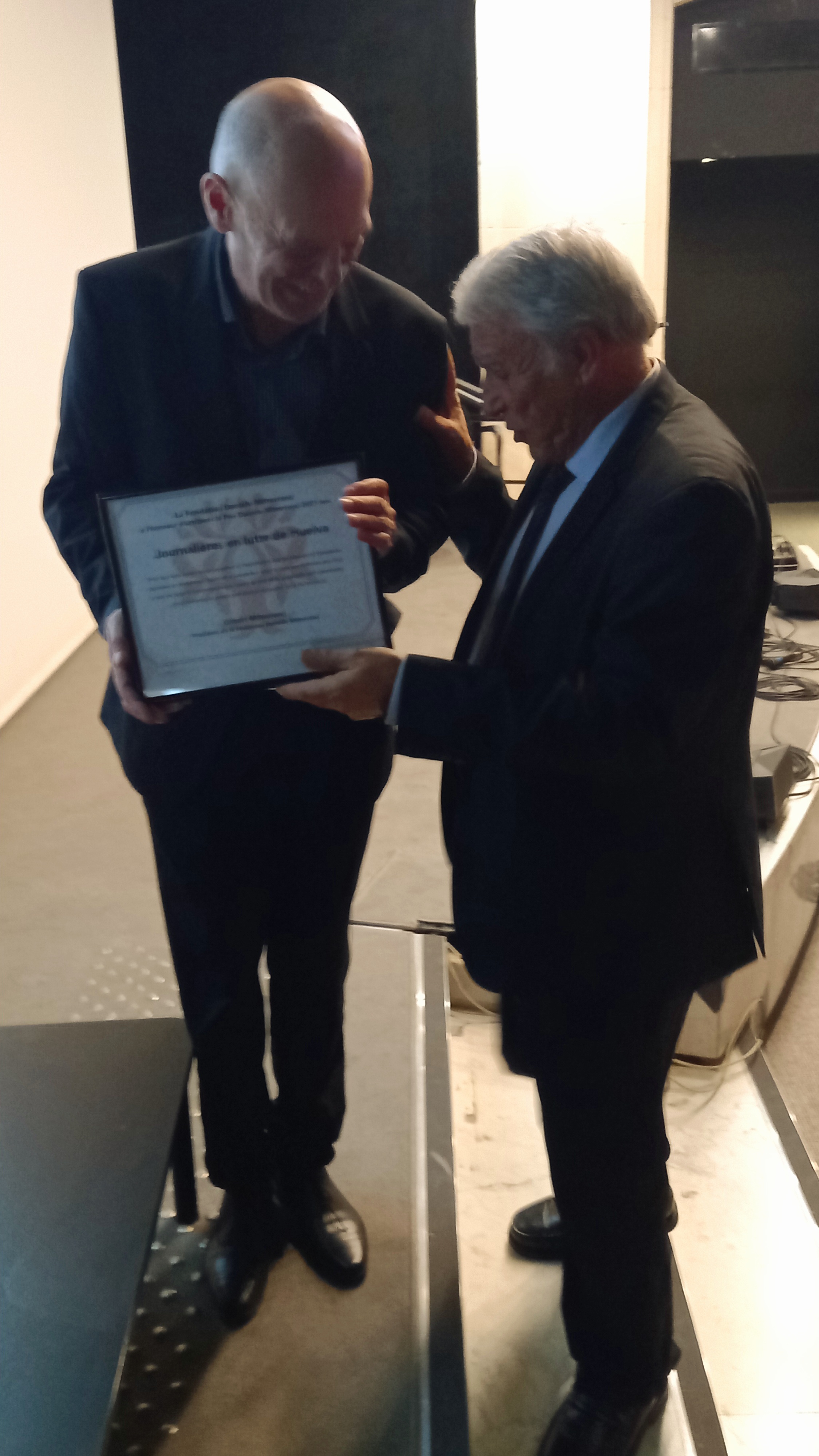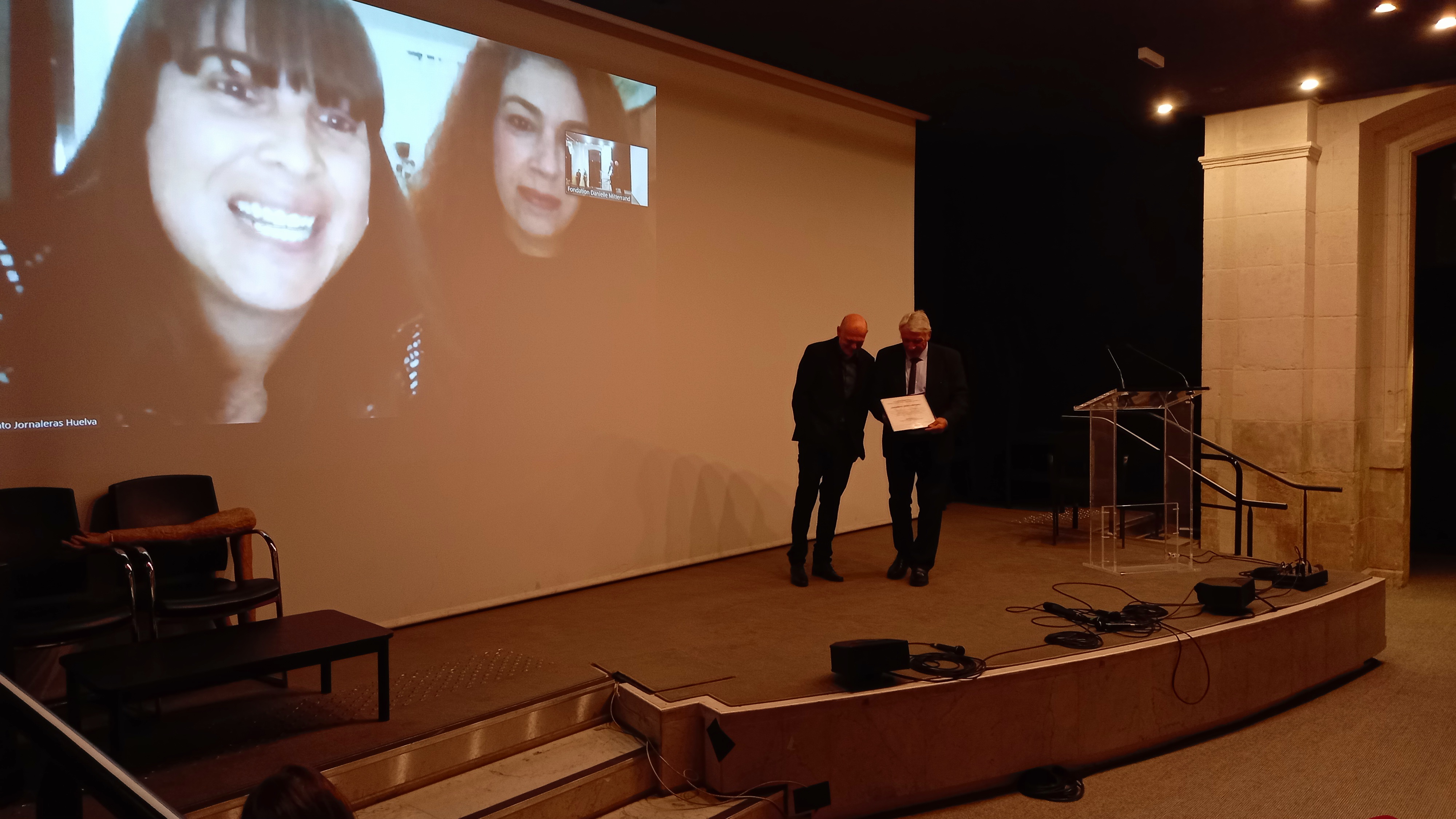 El premio fue entregado por Gilbert Miterrand présidente Fundacion France Libertés Fundación Danielle Miterrand recibio el premio el periodista y director de La Mar de Onuba en représentation del Colectivo de Jornaleras en Lucha de Huelva que participaron en directo por vidéo conferencia con Ana Pinto como portavoz