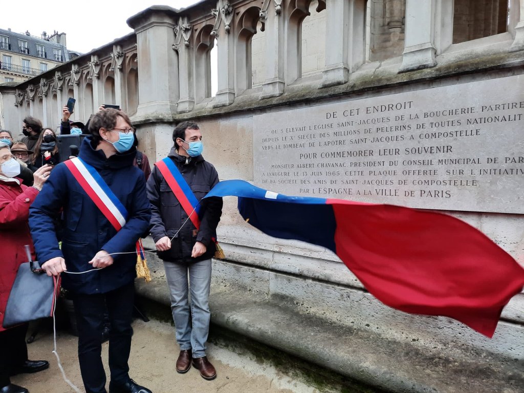 ¿Que el camino hacia Compostela tiene como punto de partida París? Desde el siglo X, la Tour Saint-Jacques ha marcado este punto, y hoy se descubrió la placa que nos lo recuerda, después de su restauración, en una ceremonia con el Embajador de España en Francia Victorio Redondo Baldrich,Ariel Weilt alcalde de Paris Centro