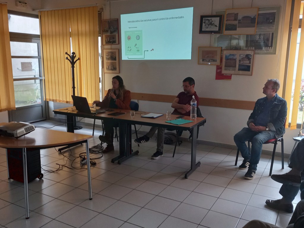 Las intervenciones y los temas tratados fueron los siguientes :Introduccion à las Vacunas para el Control de Enfermedades à cargo de Lourdes Mateos Hernández Investigadora Post-doctoral en la Agence Nationale Sécurité Sanitaire Alimentaire (ANSES)