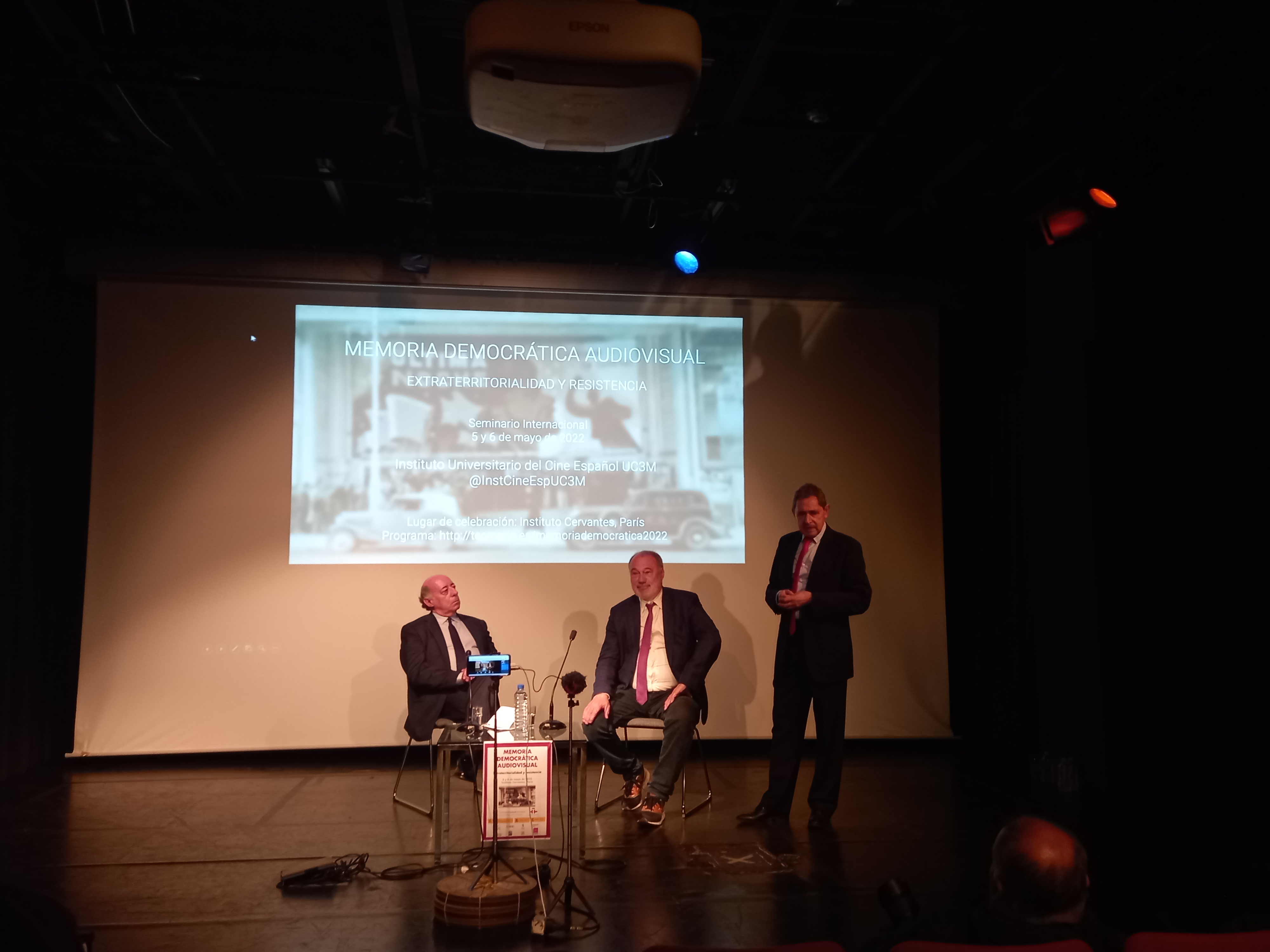 El Instituto Cervantes de París y el Instituto Universitario del Cine Español de la Universidad Carlos III de Madrid (IUCE-UC3M) organizaron un seminario de dos jornadas: «Memoria democrática audiovisual. Extraterritorialidad y resistencia», con el propósito de reflexionar sobre las muestras de la represión política y de género en la dictadura franquista, así como del desarraigo del exilio español, a partir de la mirada cinematográfica y audiovisual. Estos temas han sido objeto de interés por numerosos estudiosos y estudiosas de Francia que trabajan el hispanismo desde diversas disciplinas, entre ellas, el cine.