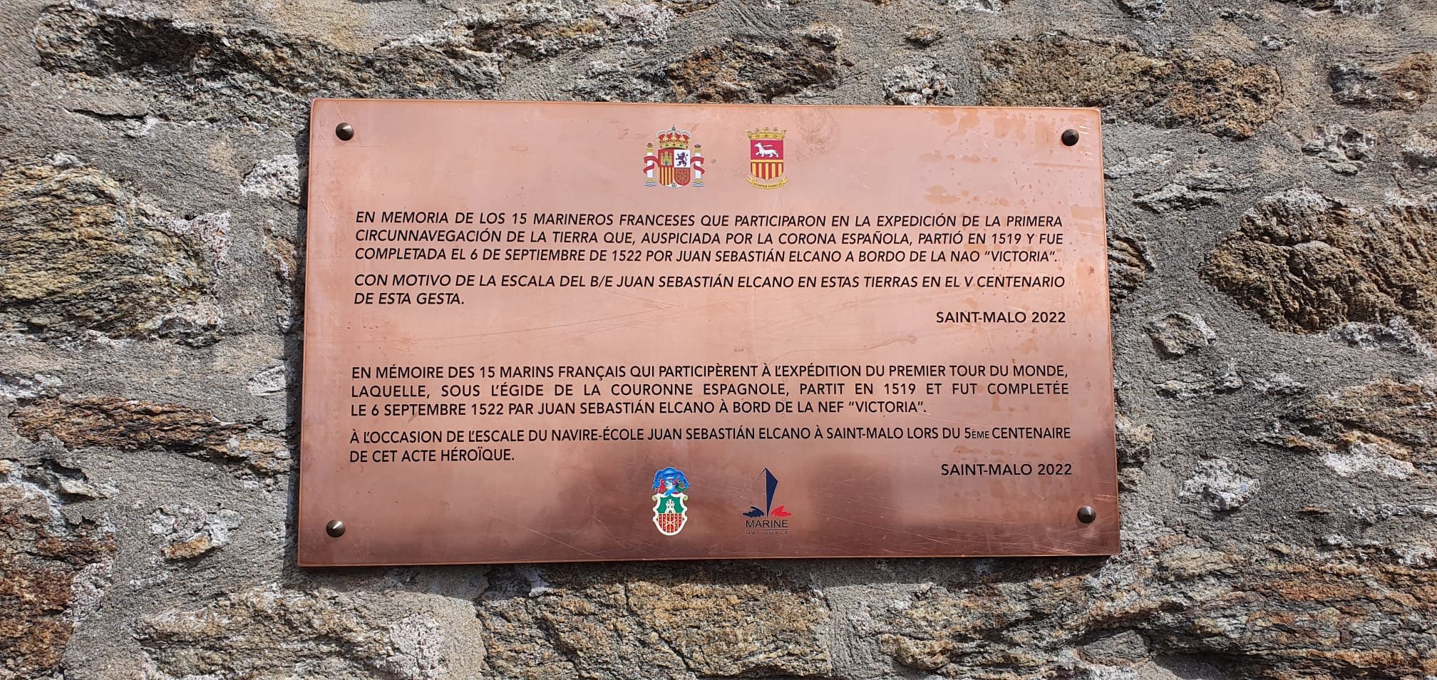 Con motivo del paso del buque, la Embajada de España ofrece al Ayuntamiento de Saint-Malo una placa conmemorativa en memoria de los quince marineros franceses (incluido uno de Malouin) que participaron en la expedición de Magallanes.