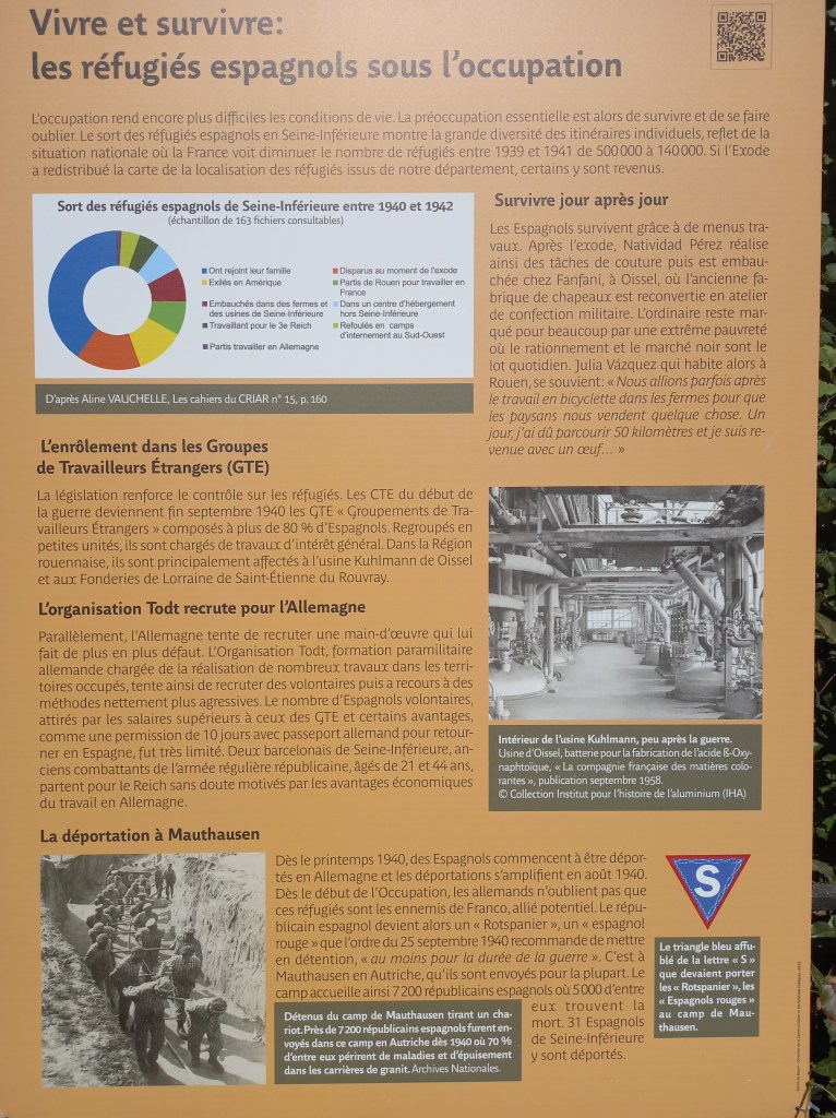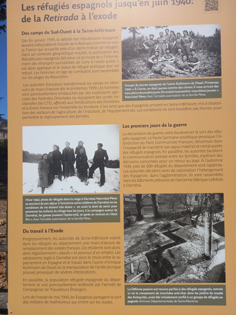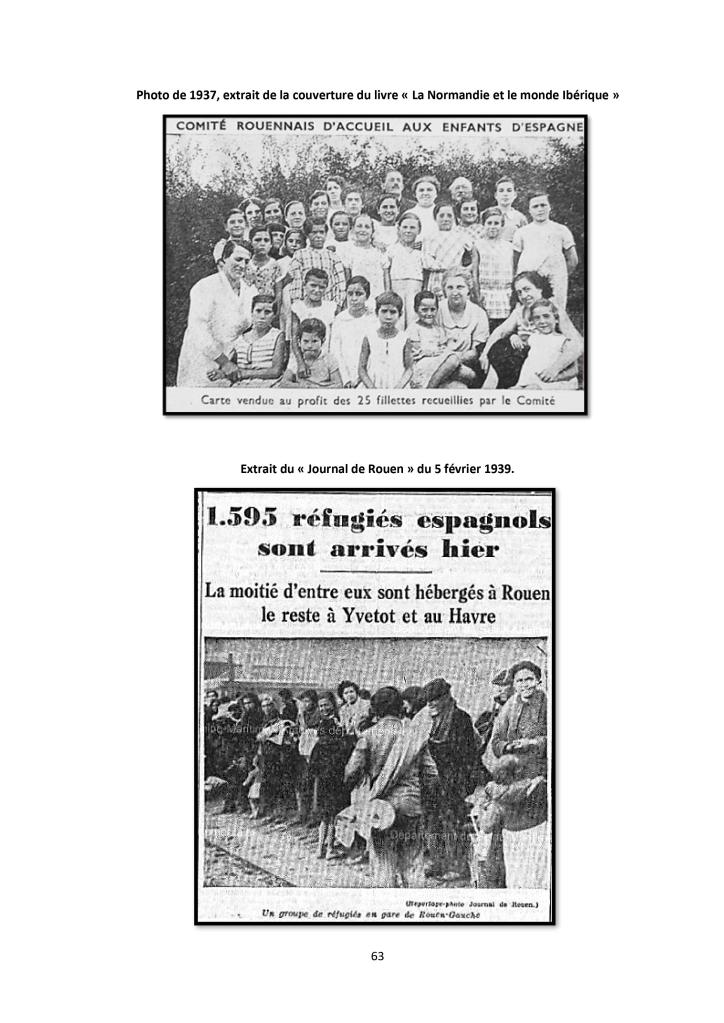 La Seine-Inférieure, muy lejos de la frontera sur, acoge sólo a cuatro mil exiliados españoles, incluidos unos novecientos en Rouen y sus alrededores. Los periódicos normandos de ese tiempo da testimonio de esta llegada.