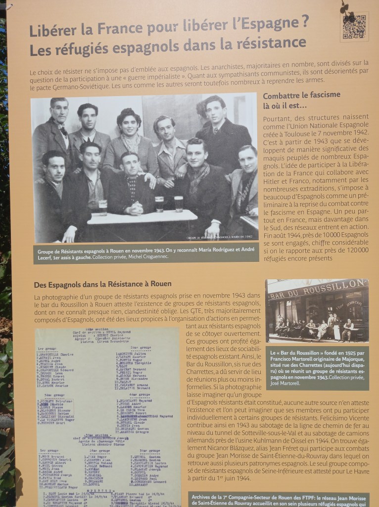 Nunca había oído hablar de la resistencia española en Normandía y menos en Ruán, hasta ahora.Roberto se puso en contacto con el Sr. Alain Alexandre, coordinador histórico de la publicación… Así conoco a Michel Croguennec, la persona que le animó a iniciar esta investigación. Sin él y su amor por ella compañera, nieta de un refugiado español, nunca se habría comprometido a escribir esto.