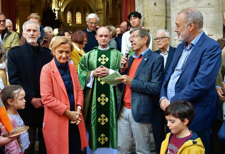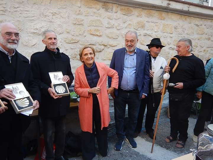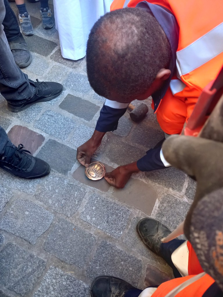 Inauguracion de las 70 conchas de Santiago en la Rue Saint-Jacques,que señalizan el camino de Santiago que cruza Paris