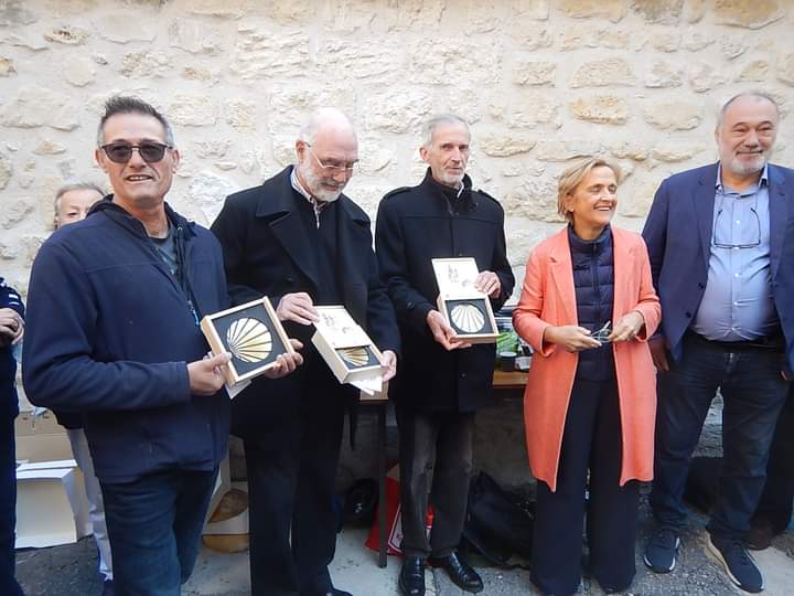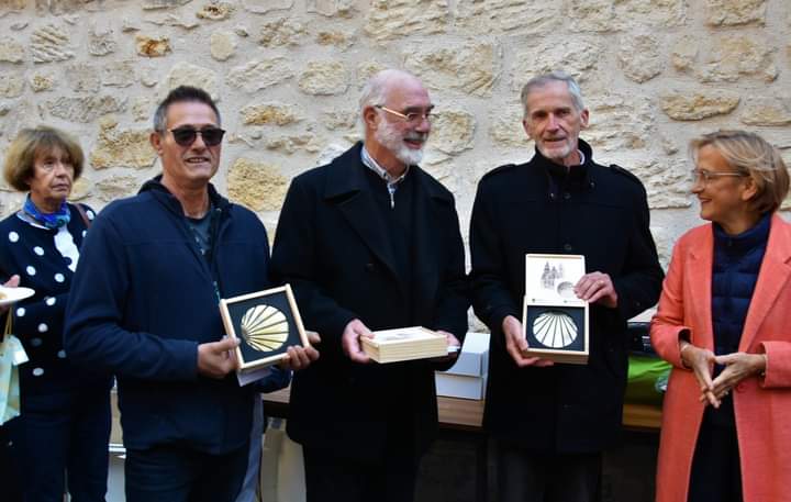 El domingo 18 tuvo lugar la Inauguracion de las 70 conchas de Santiago en la Rue Saint-Jacques,que señalizan el camino de Santiago que cruza Paris El acto inagural tuvo lugar en la Iglesia Saint-Jacques de Haute Pas y su esplanade con la instalacion de la ultima concha en bronce, La jornada comenzo con una marcha a pie desde la Torre Santiago de Paris (patrimonio de la UNESCO a titulo del Camino de Santiago desde 1998) recorriendo los 2km dela Calle Santiago (rue Saint Jacques)donde estan instaladas las 70 conchas,inaguradas oficialmente este domingo 18 septiembre en presencia de la alcaldesa del distristo V Sra.Florence Berthot que gracias a su apoyo,este proyecto se hizo realidad,Consejero Cultural Embajada de España Roberto Varela,Parroco de la Iglesia Santiago Alto PasoFrancois Delpit ,que oficio la misa y bendijo la concha numero 70 situada delante de la Iglesia ,Las Asociaciones Compostelle 2000,Asociacion España en Paris,que despues de mas de 13 anos llevan trabajando para señalizar el Camino de Santiago que Cruza Paris y que con estas primeras 70 conchas ven parte de su trabajo recompensado,el siguiente Paso es la instalacion ded 74 conchas en el districto 14 de Paris,proyecto ya aceptado y aprobado por este ayuntamiento y en espera de fechas para su instalacion,siguiendo con estos proyectos y para completar la senalizacion en Paris del Camino de Santiago desde el 8 septiembre y hasta el 28 se esta votando el proyecto presentado para señalizar Paris Centro dentro del Buget Participativo del ayuntamiento Parisino ,proyecto retenido y sometido a votacion Al finalizar la Inaguracion las campanas de la Iglesia sonaron durante 10 minutos,dando paso al sonido de la Gaita gallega tocada por Eric,que animo con su musica, el coctel ofrecido a los numerosos asistentes, dode la Tarta de Santiago y la empanada gallega, fueron Protagonistas en estos actos participaron mas de 300 personasDurante esta ceremonia se quiso reconocer, por parte de España en Paris el trabajo de tres personas Jean Francois Fejoz,Rene Deleval, Joao Manuel Goncalves, que llevan trabajando y señalizando el camino de Santiago por toda la Isla de Francia y concretamente en Paris,El consejero Cultural de la Embajada Roberto Varela, La alcaldesa de Paris 5 Sra Florence Berthot y Eduardo C Paz ,director España en Paris al origen de esta iniciativa,entregaron unas conchas en Bronce conmeorativas en nombre de la Xunta de Galicia,Turismo galicia y Xacobeo 21-22 enviadas para esta ocasion