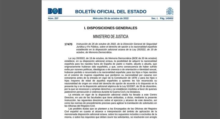 Todos los hijos y nietos nacidos en el extranjero de personas originariamente españolas podrán acceder a la nacionalidad. El Ministerio de Justicia reinterpreta la Ley de Memoria Democrática y amplía los supuestos de acceso a la ciudadanía. Más información https://bit.ly/3Ffpip1 #españaexterior #españolesporelmundo #espanaexterior #españolesxelmundo #nacionalidad #emigrantesespañoles #migraciones #descendientesemigrantesespañoles @CeDEU2 @EspanolesEn @des_exilio #CREs #CGCEE #CRE