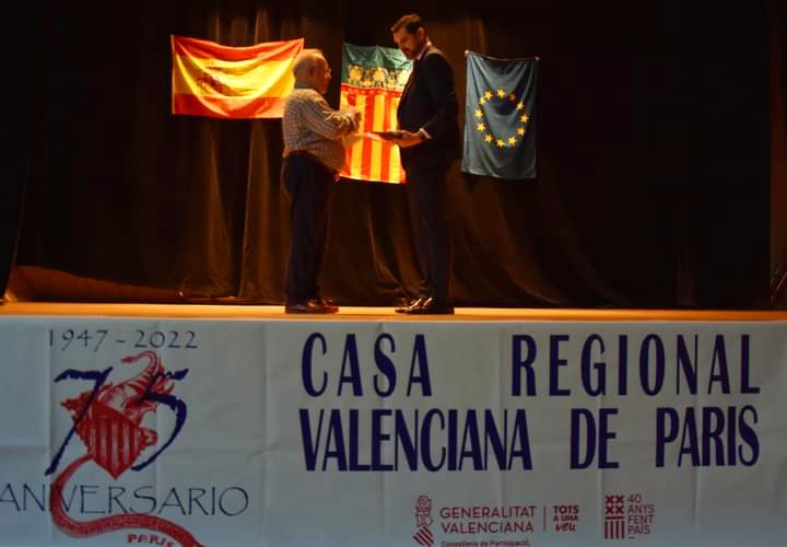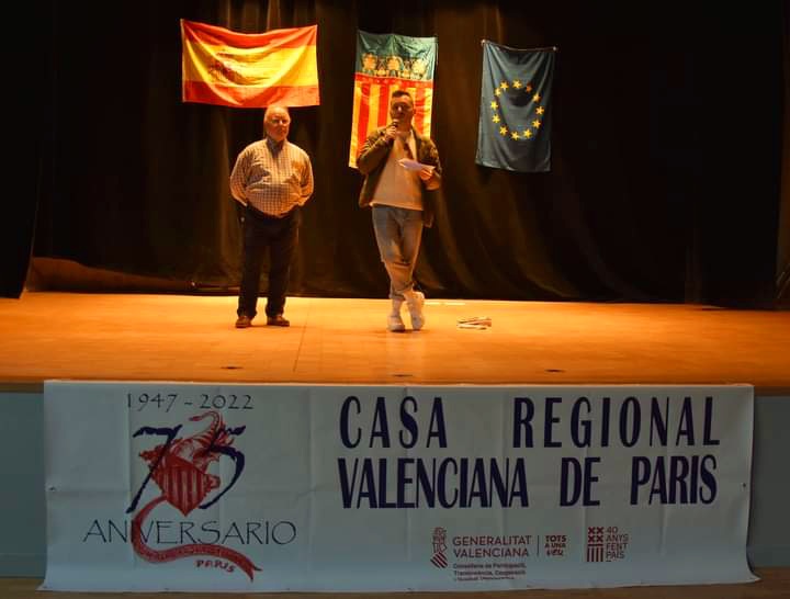 El Consejero Laboral destaco ; Para mi es un honor participar en este 75 aniversario como consejero y como valenciano,felicitar a todos por estos 75 años donde la Casa Regional fue un referente y sigue siendo para los valencianos ,españoles y de otras nacionalidades,que descubren y descubrieron a lo largo de todos estos anos nuestra cultura nuestra lengua ,nuestra gastronomia y solidaridad,Os deseo como minimo otros 75 años representando nuestra Comunidad sois los embajadores de Valencia en Paris .