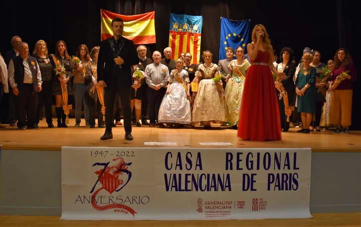 El Sabado 12 Noviembre tuvo lugar la Gran Gala 75 Aniversario en la sala Saint Pierre de Neuilly, fue presentada por Boro Peiro, y conto con la presencia del Consejero Laboral Daniel Jesus Solana Gazquez (tambien valenciano) Las Falleras Mayores: Emma Testu Fernandez, Fallera Infantil y Ana Enriquez Mayo, Fallera Mayor de la Casa Regional deValenciana de Paris ,Carla García Fallera Mayor Infantil de Valencia, Personal Consejeria Laboral y el Consejero Daniel Jesus Solana Gazquez al cual Joaquin Ros Alfaro Vicepresidente, le impuso la Insignia de oro de la Casa Regional de Valencia en Paris,Por su parte el Consejero Laboral Daniel Jesus Solana Gazquez,entrego a la Casa Regional Valenciana de Paris documentos que figuraban en la consejeria que recogen la creacion de la Casa Regional Valenciana de Paris