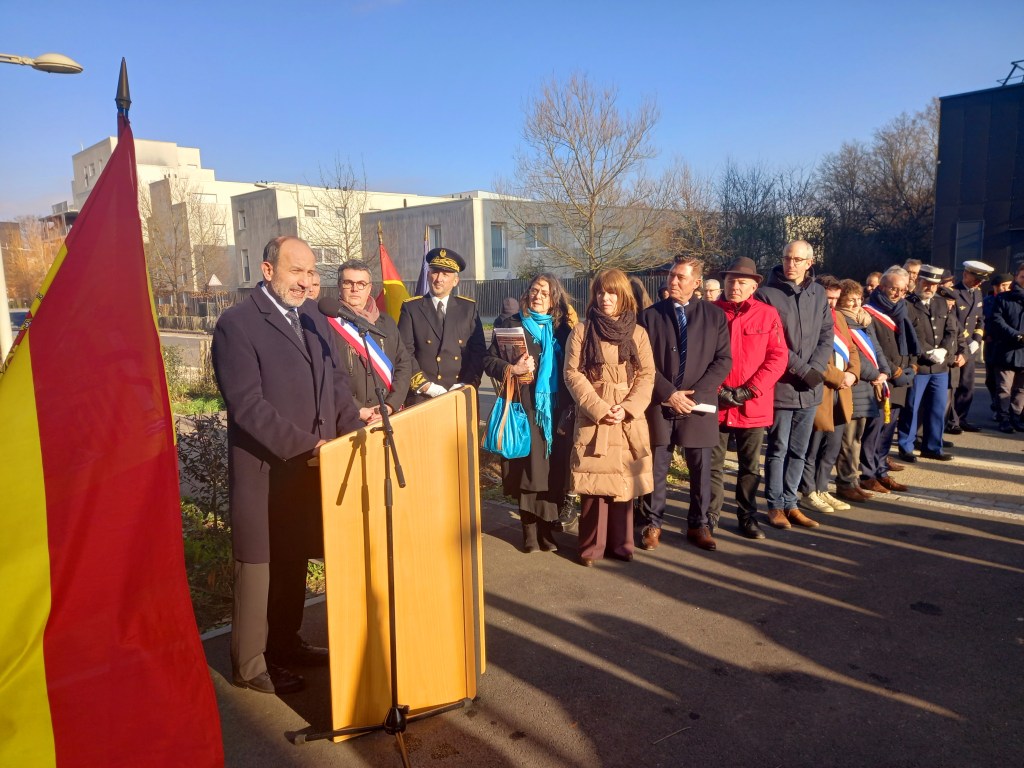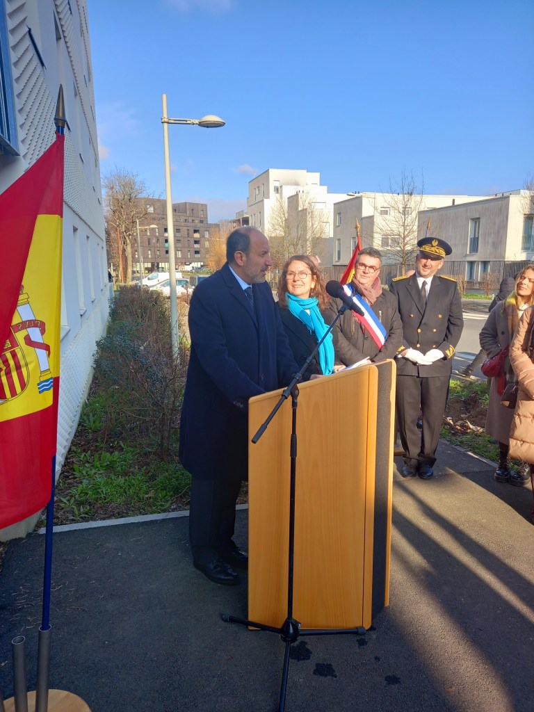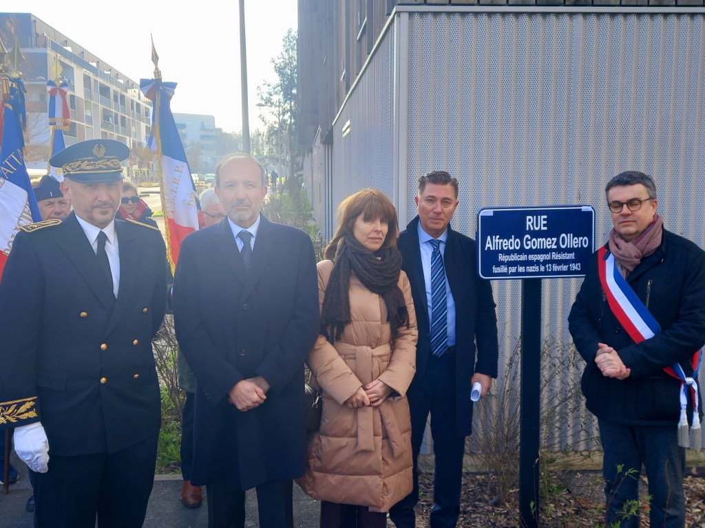 Homenajeado por la Ciudad de Nantes dando su nombre a una calle, el acto estuvo presente el embajador de España en Francia Victorio Redondo Baldrich,Françoise Dubosquet, -Cosul Honoraria española en Rennes, autoridades francesas y familiares de los 5 republicanos españolas fusilados en 1943 en la Ciudad de Nantes