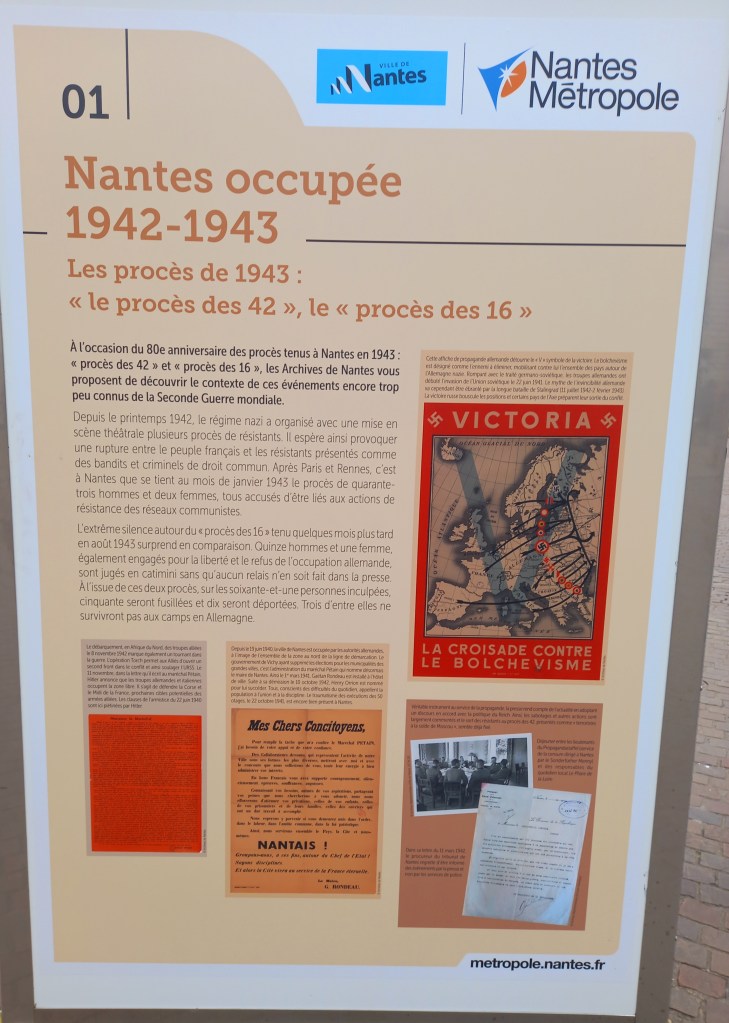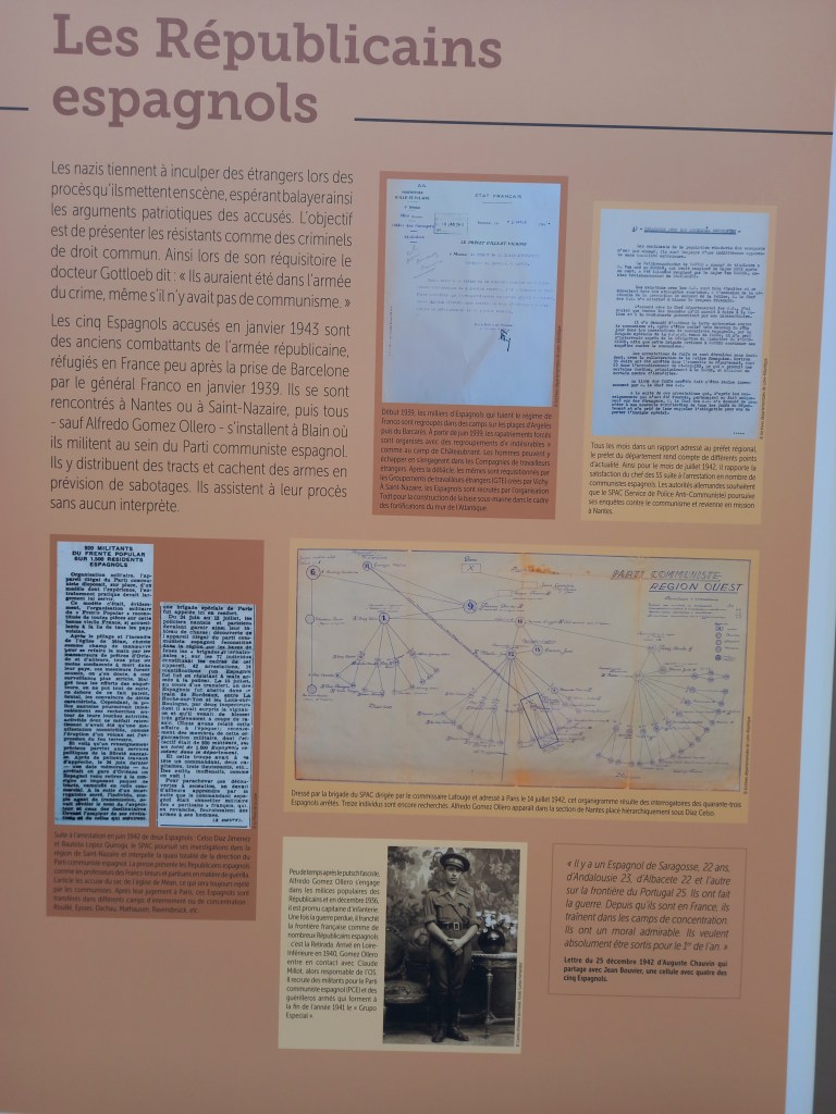 En enero de 1943, se inauguró en Nantes el mayor juicio de la zona ocupada. Un total de 45 francos-tireurs y partisanos (incluidas 2 mujeres) comparecieron ante un tribunal militar alemán. Tras una parodia del llamado “juicio de los 42”, el veredicto está en: 37 son condenados a muerte. Entre ellos cinco republicanos españoles, entre ellos Alfredo Gómez Ollero. Fusilados el 13 de febrero de 1943 en el campo militar de Bêle, sus cuerpos fueron enterrados en el cementerio La Chapelle-Basse-Mer. Todavía descansan allí.