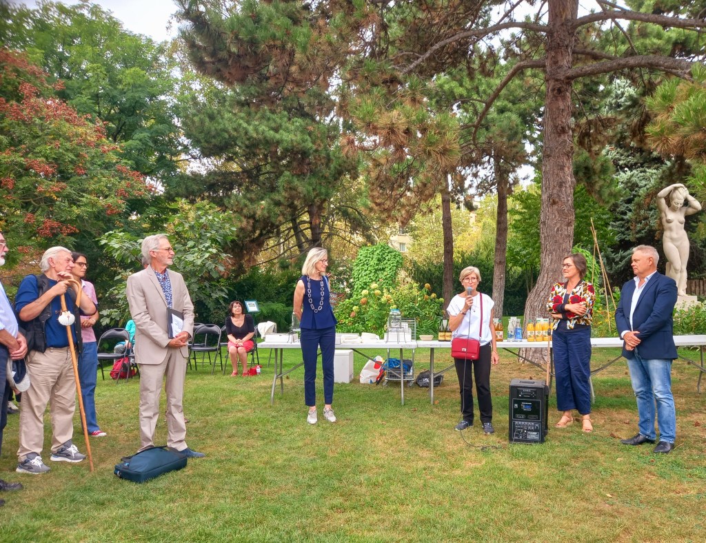 27 conchas instaladas en el Parque de la Villette (ciudad de ciencias),70 instaladas en la Rue Saint-Jacques (calle Santiago)districto 5ème y las 101 inaguradas este 17 de Septiembre en el districto 14eme, !!al final del acto los asistentes pudieron deleitarse con las tarartas de Santiago fabricadas para esta ocasion !!