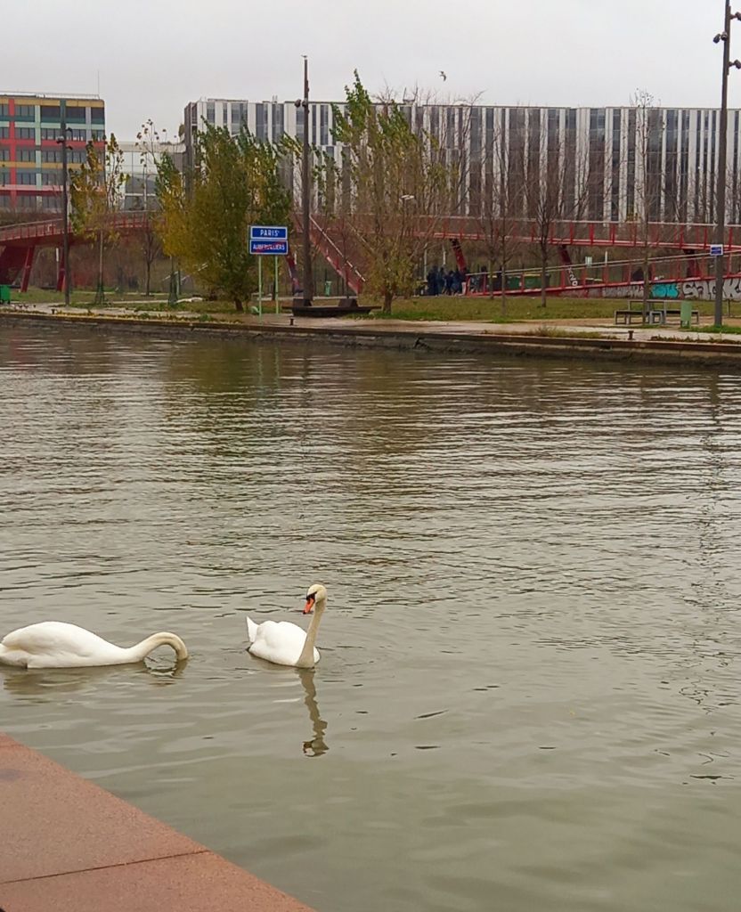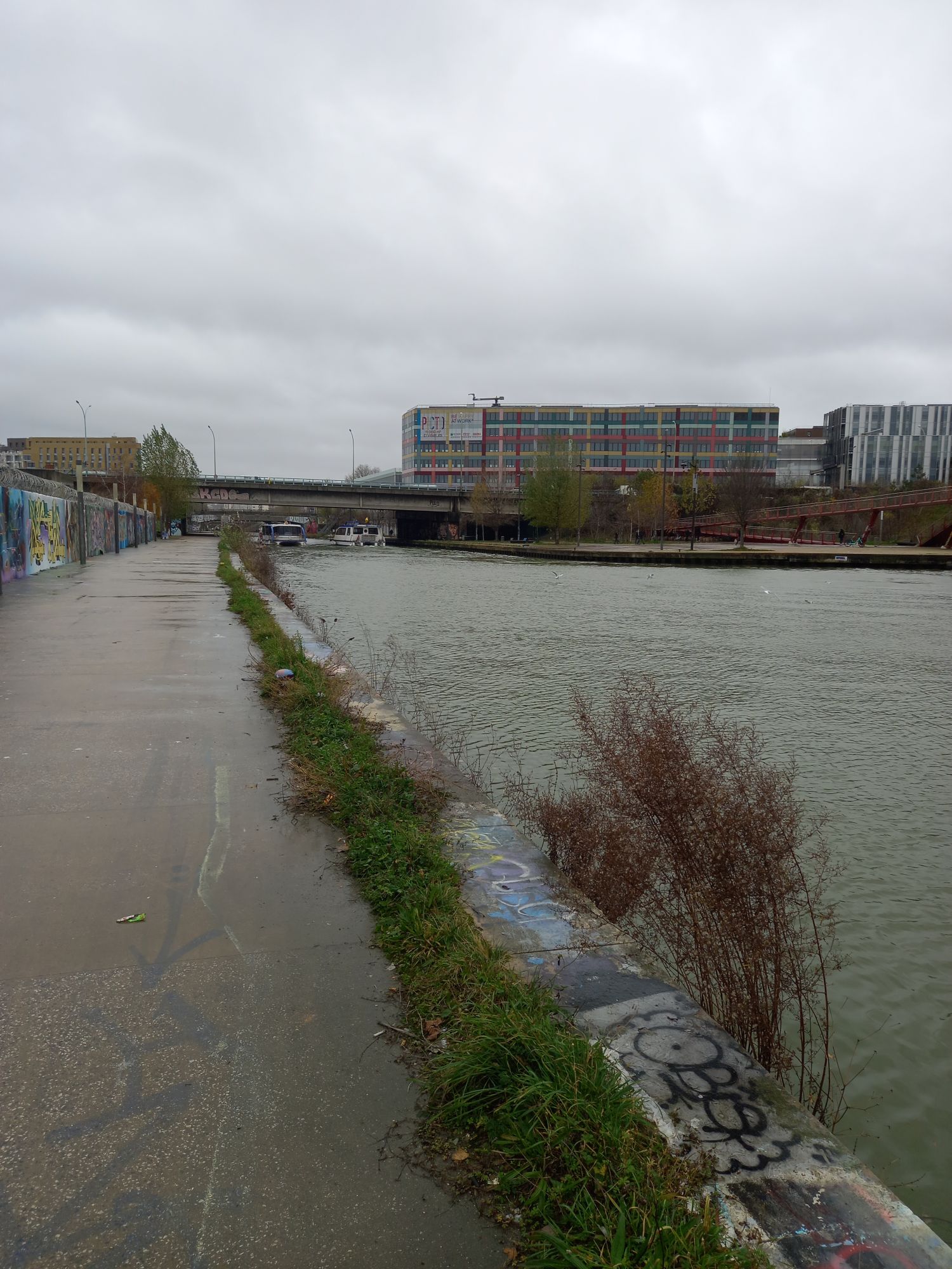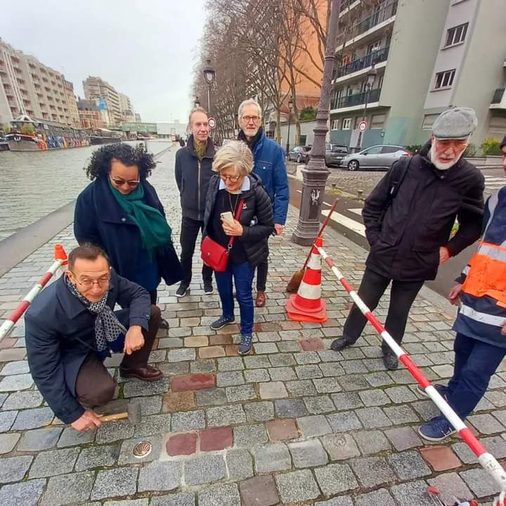 Ahi estuvimos el 21 y 22 de diciembre Señalado y vérificando emplazamiento de las Conchas de Santiago a lo largo del canal desde la salida de Aubervilliers hasta la plaza Stalingrad