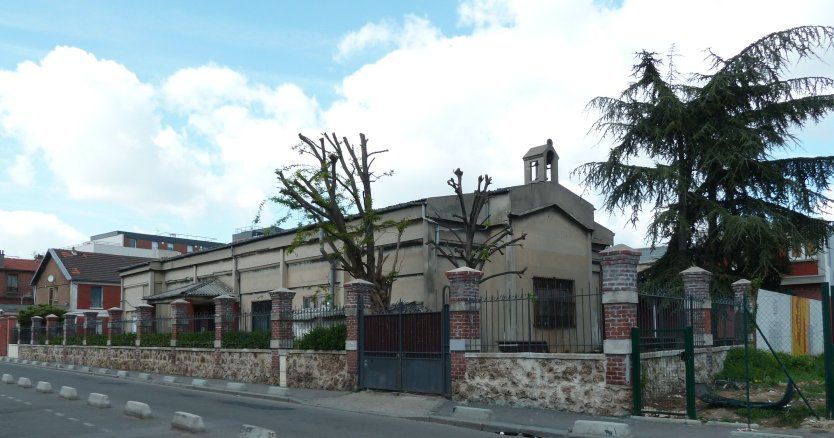 La capilla (A), ¿plano? rectangular, fue construido íntegramente en hormigón con un espíritu racionalista, moderno y refinado. ¿La estructura? Lo que queda visible marca la división en tramos al tiempo que proporciona un ritmo al edificio. ¿La ornamentación sigue siendo escueta y se limita a bandas y una cornisa? redondeado, directamente desde la aplicación del hormigón. Un frontón coronado con una cruz latina que marca la entrada, simétrico al propio coro coronado por un campanario, recordaba la función religiosa del edificio. ¿La entrada con frontón que faltaba estaba cubierta con revestimiento?