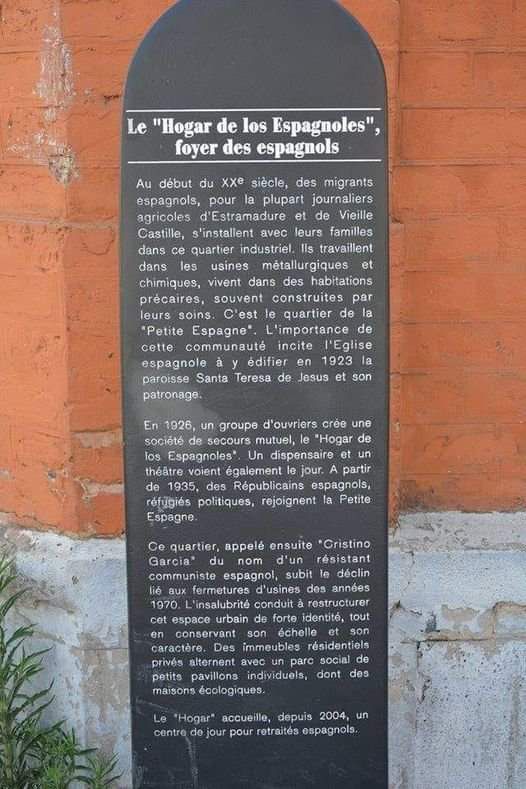 Desde finales del siglo XIX, las vidrieras, fábricas químicas y metalúrgicas de la Plaine utilizaron significativamente mano de obra extranjera. Inicialmente anecdótica, la inmigración española cobró verdadera importancia a partir de 1910. Se organizó una auténtica colonia, cuya importancia y sobre todo, la precariedad de las condiciones de vida y de trabajo movieron a movimientos obreros como la embajada de España, que alertó al rey Alfonso XIII. En respuesta,la monarquía ofrece supervisión religiósa de esta población trabajadora,permitiendo así distanciarla del pensamiento socialista.