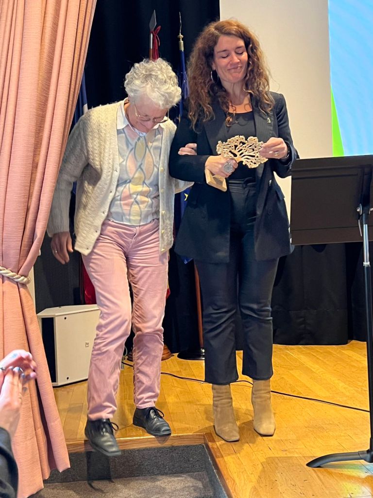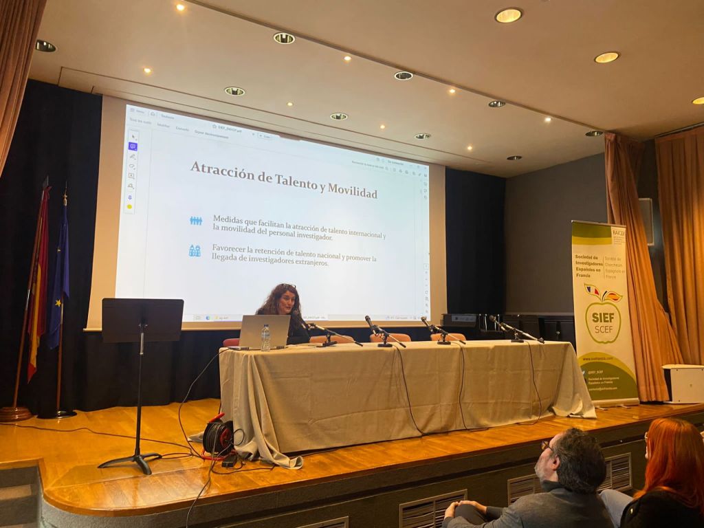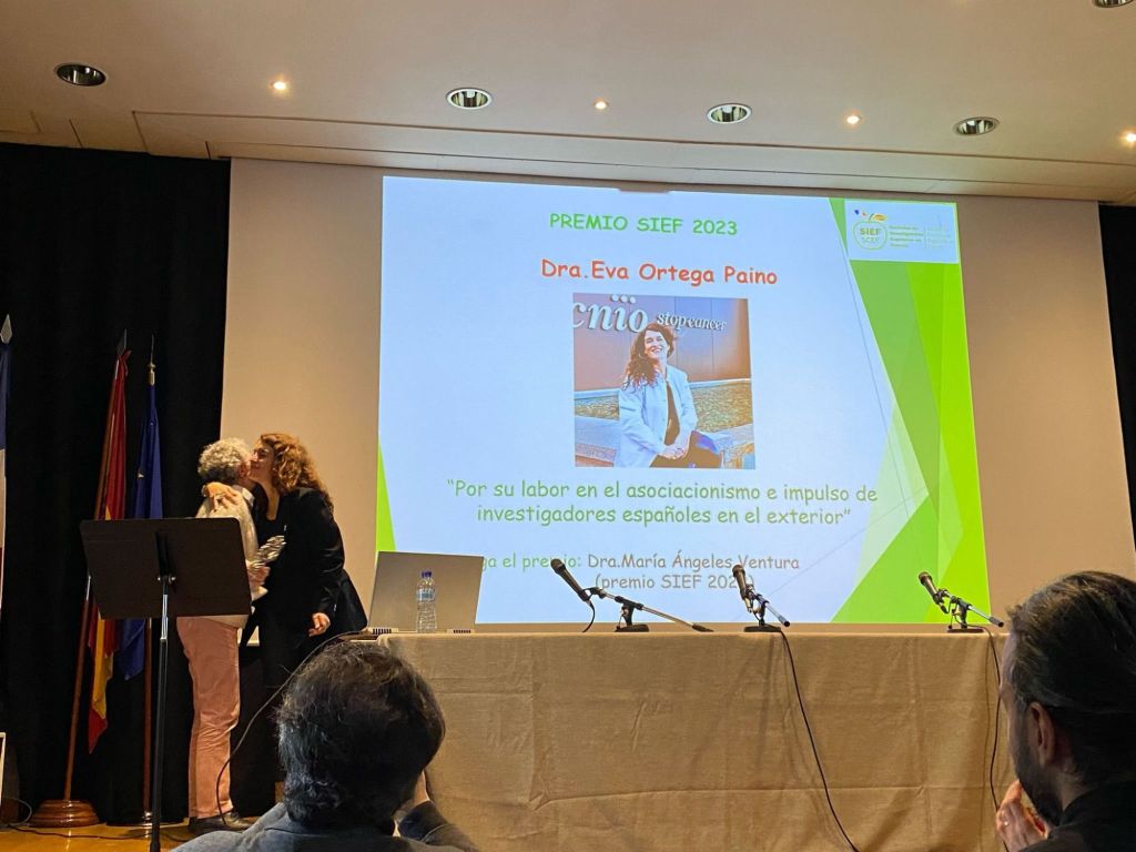 «Tras la ponencia de Eva, Ortega Paíno, Secretaría General de Investigación Ministerio de Ciencia Innovación y Universidades, se le entregó el premio SIEF 2023 por su labor en el asociacionismo e impulso de los Investigadores Españoles en el Exterior. El premio fue atorgado por la Dra. Maria Angeles Ventura premiada en 2022»