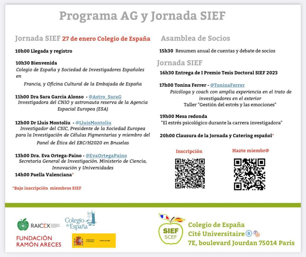 En el Colegio de España de la Ciudad Universitaria de Paris, tuvo lugar el Congreso anual de la Sief-Raicex.(sociedad investigadores españoles en Francia) La sesión comenzo con la bienvenida de la Presidenta y el Vicepresidente de SIEF Francia,Lourdes Mateos Y Carlos Pascual, à los asistentes entre ellos el Embajador de España en Francia Exc.Sr Victorio Redondo Baldrich.