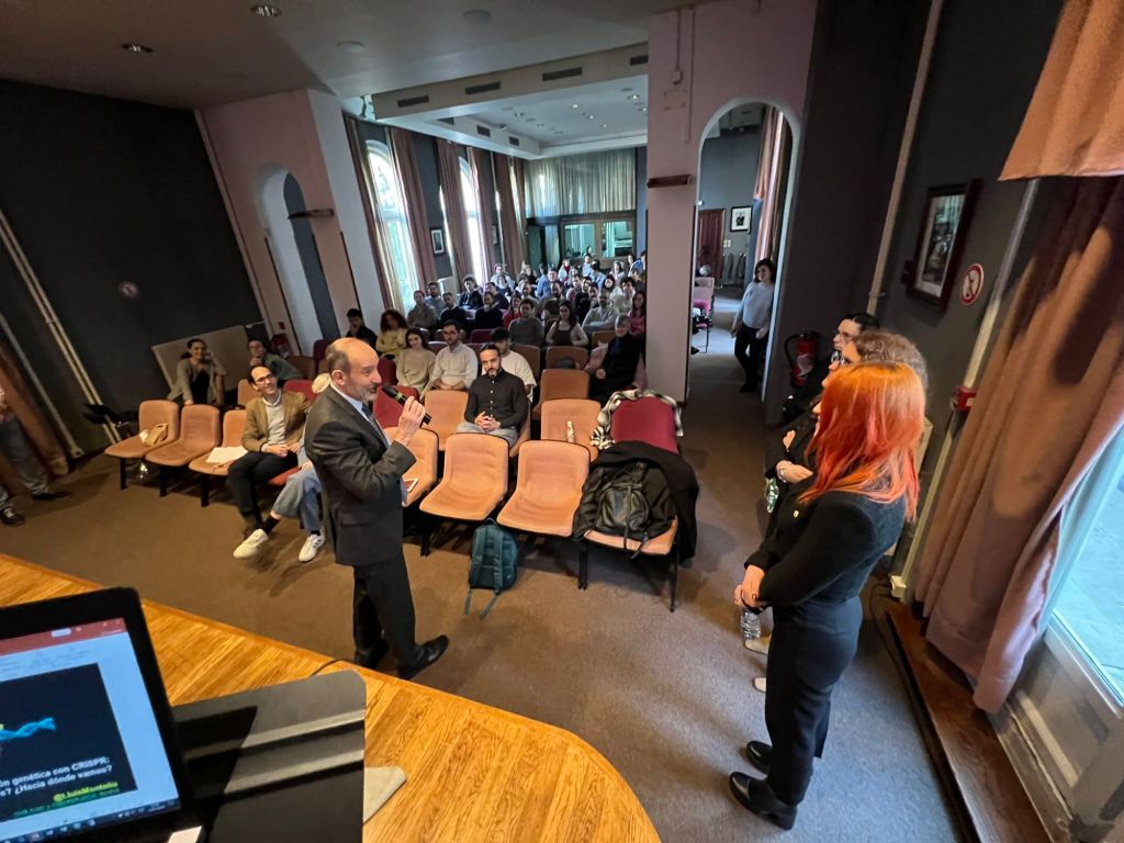 Seguidamente intervino el doctor Lluis Montolieu Investigador del CSIS, presidente de la Sociedad Europea para la Investigación de Células Pigmentarias y miembro del Panel de Etica del ERC/2020 en Bruselas,que intervino con el tema La Edicion Genetica