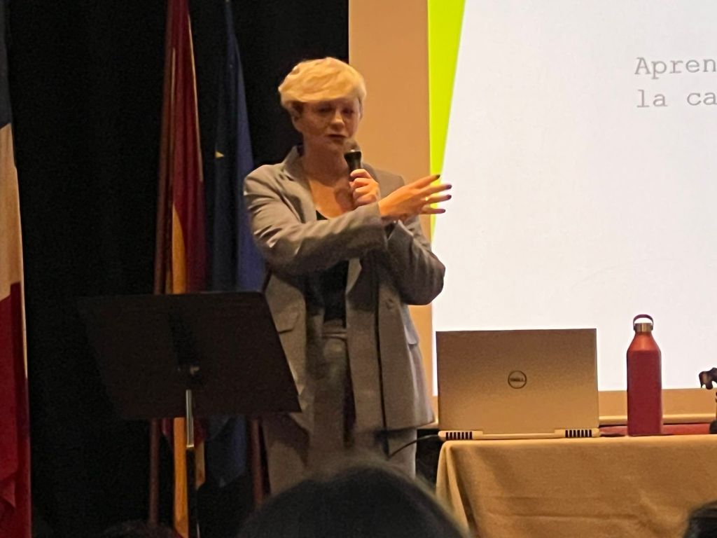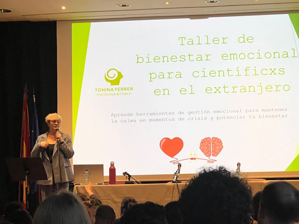 La intervencion de la Sipcologa y Coach : Tonina Ferrer,con amplia experiencia en el trato de investigadores en el exterior, dio paso à una charla sobre la Gestion del Estres y las Emociones «seguido de una mesa Redonda con las intervenciones de Tonina Ferrer Lluis Montolieu,el biologista Diego Santos Garcia y el Consejero de Migraciones y Seguridad Social Daniel Jesús Solana Gazquez con el tema»El Estres Psicologico durante la Carrera Universitaria»