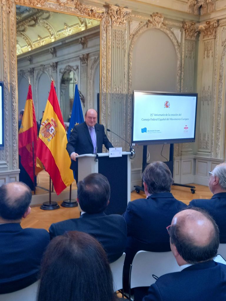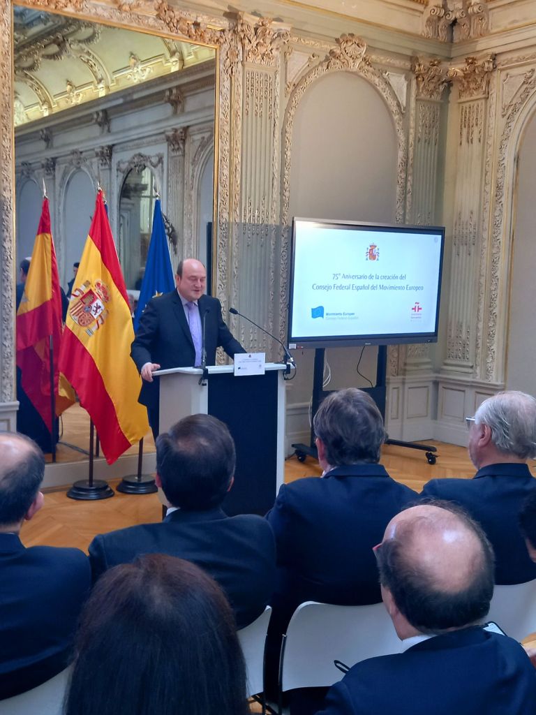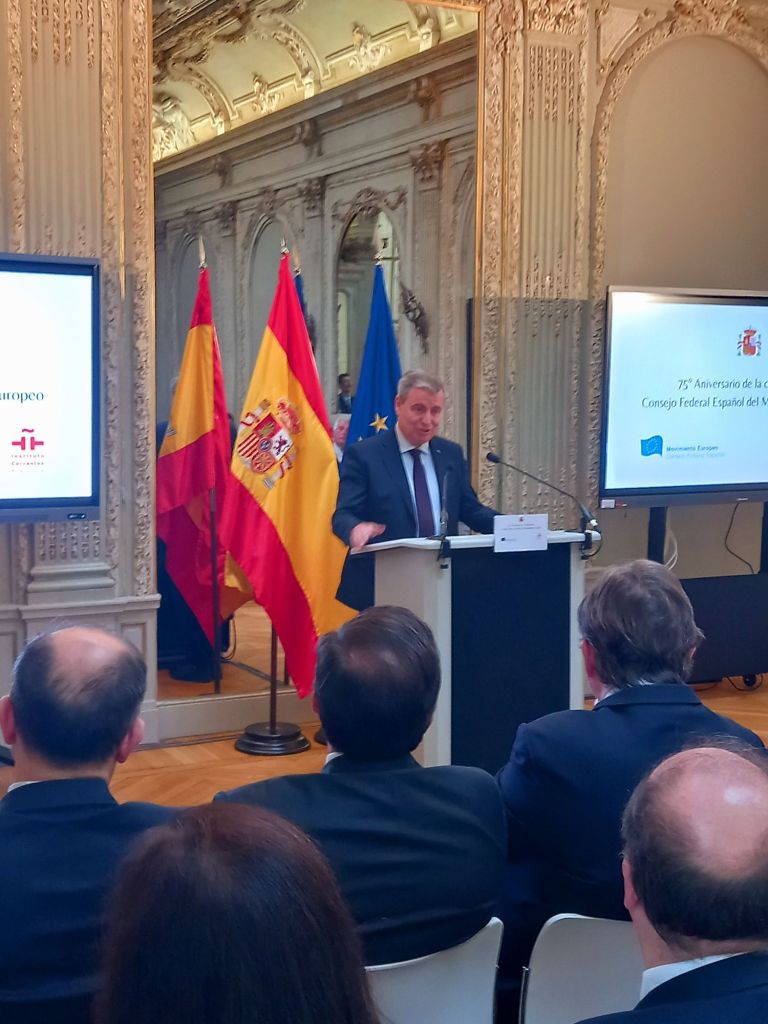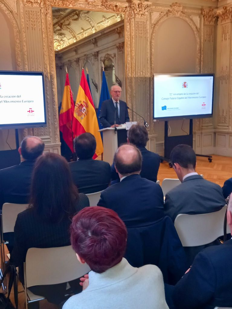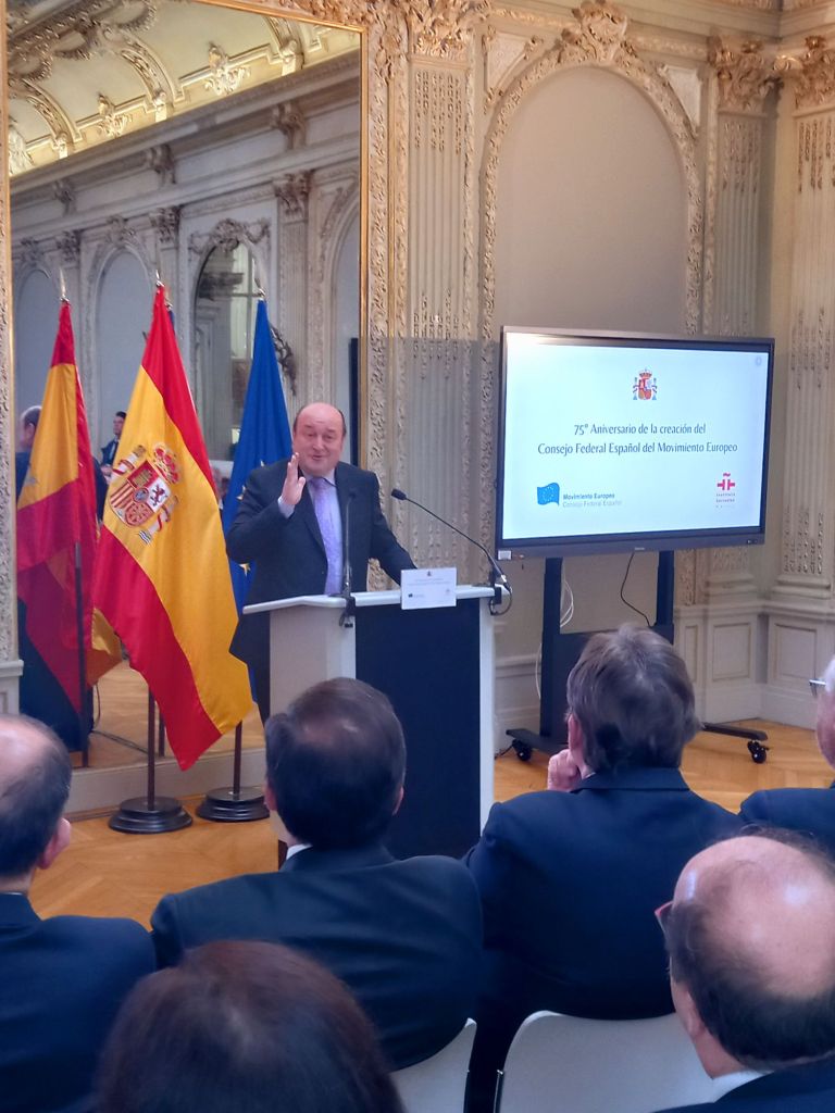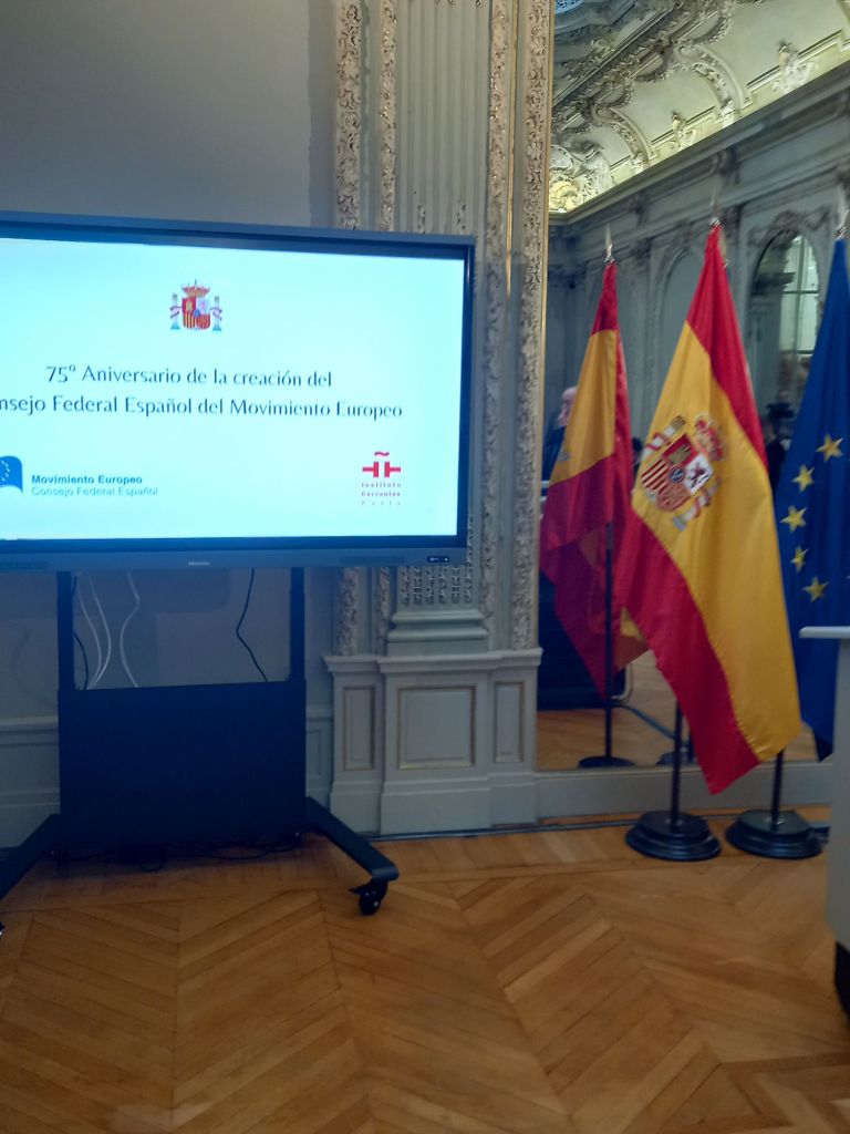 En la sede del Instituto Cervantes de París (11, av. Marceau), en el mismo edificio en el que se fundó en febrero de 1949.Se celebro el 75°Aniversario de la creación del Consejo Federal Español del Movimiento Europeo,con las intervenciones del presidente del Consejo Federal Español del Movimiento Europeo, Francisco Aldecoa; de la presidenta del Consejo Vasco del Movimiento Europeo – EuroBasque, Irune Zuluaga; del presidente del Consell Català del Movimiento Europeo, Jordi Xuclá; del presidente del PNV, Andoni Ortuzar; del presidente de la Unión de Europeístas y Federalistas de España, Enrique Barón; del exdirector de Relaciones Exteriores de la UE, Eneko Landaburu; del director del Instituto Cervantes, Luis García Montero; y del ministro de Asuntos Exteriores, Unión Europea y Cooperación, José Manuel Albares.