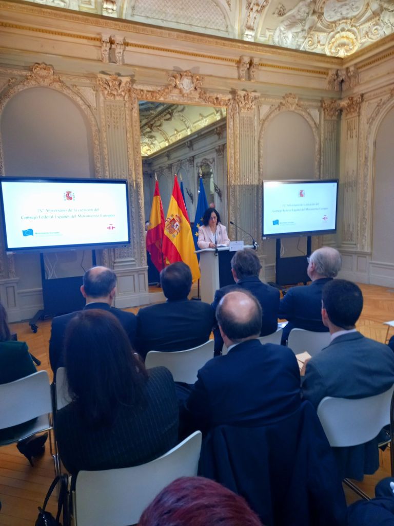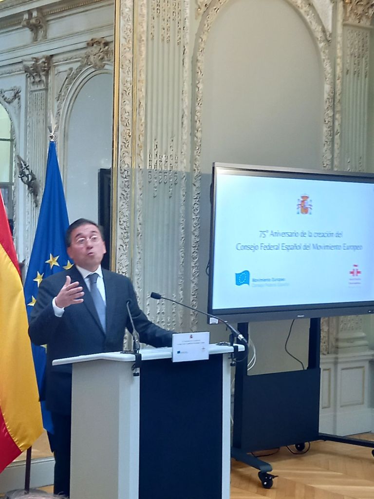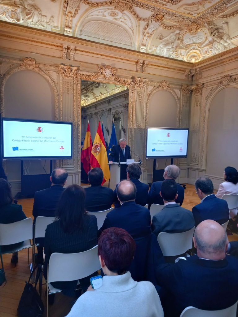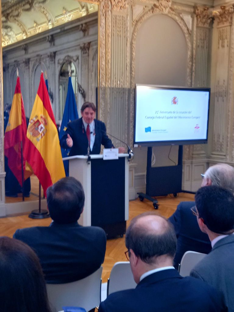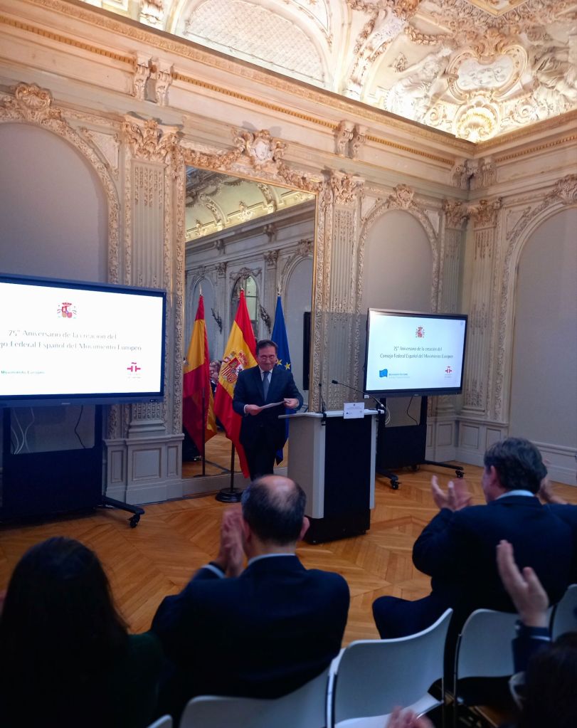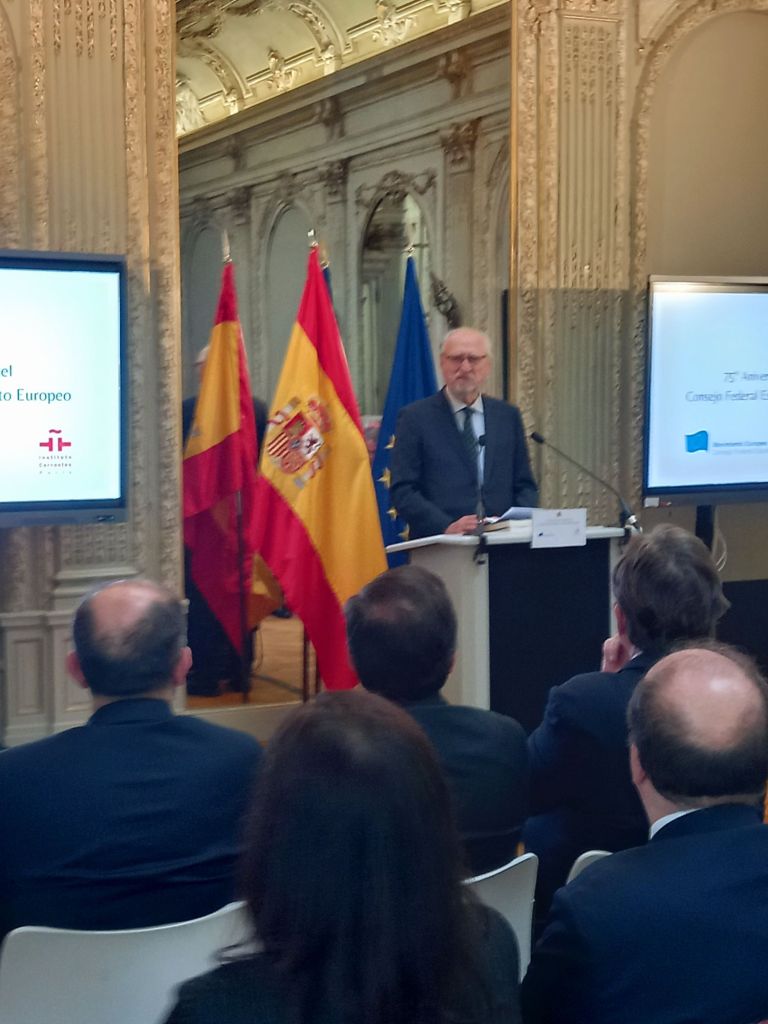 En la sede del Instituto Cervantes de París (11, av. Marceau), en el mismo edificio en el que se fundó en febrero de 1949.Se celebro el 75°Aniversario de la creación del Consejo Federal Español del Movimiento Europeo,con las intervenciones del presidente del Consejo Federal Español del Movimiento Europeo, Francisco Aldecoa; de la presidenta del Consejo Vasco del Movimiento Europeo – EuroBasque, Irune Zuluaga; del presidente del Consell Català del Movimiento Europeo, Jordi Xuclá; del presidente del PNV, Andoni Ortuzar; del presidente de la Unión de Europeístas y Federalistas de España, Enrique Barón; del exdirector de Relaciones Exteriores de la UE, Eneko Landaburu; del director del Instituto Cervantes, Luis García Montero; y del ministro de Asuntos Exteriores, Unión Europea y Cooperación, José Manuel Albares.