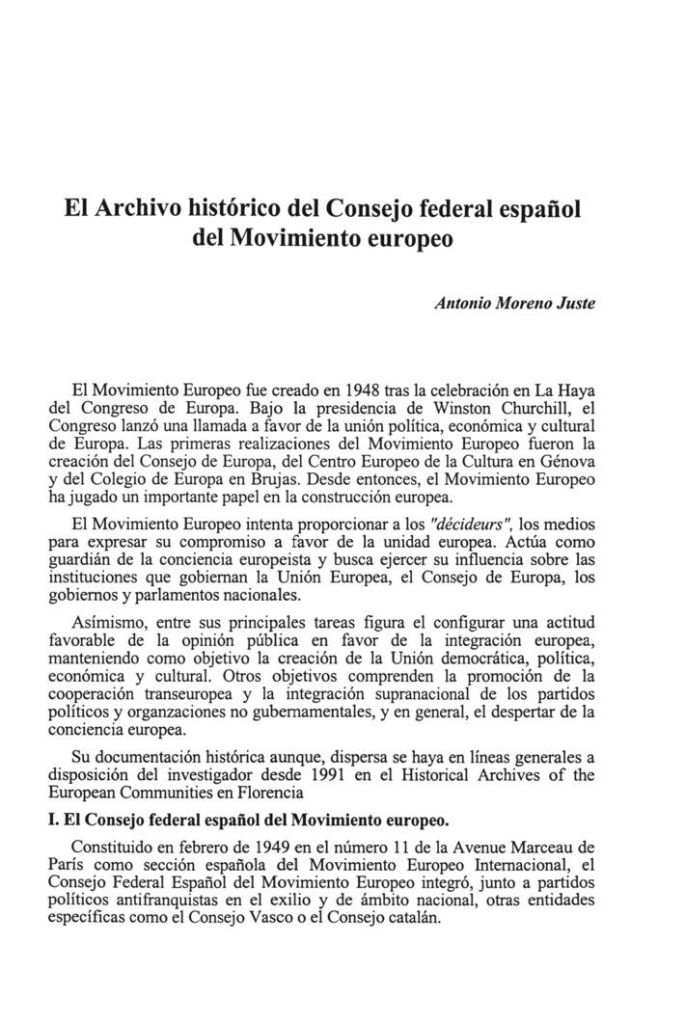 el 7 y 8 de febrero de 1949 nace el Consejo Federal Español del Movimiento Europeo (CFEME) en el exilio en París, en la sede del Partido Nacionalista Vasco, en la avenida Marceau 11. En esa reunión fundacional, participaron principalmente vascos, catalanes y republicanos y jugaron un papel esencial José Antonio Aguirre, Javier Landaburu, Josep Irla, Josep Tarradellas, Indalecio Prieto y Salvador de Madariaga, entre otros. Este último fue designado primer presidente del CFEME.