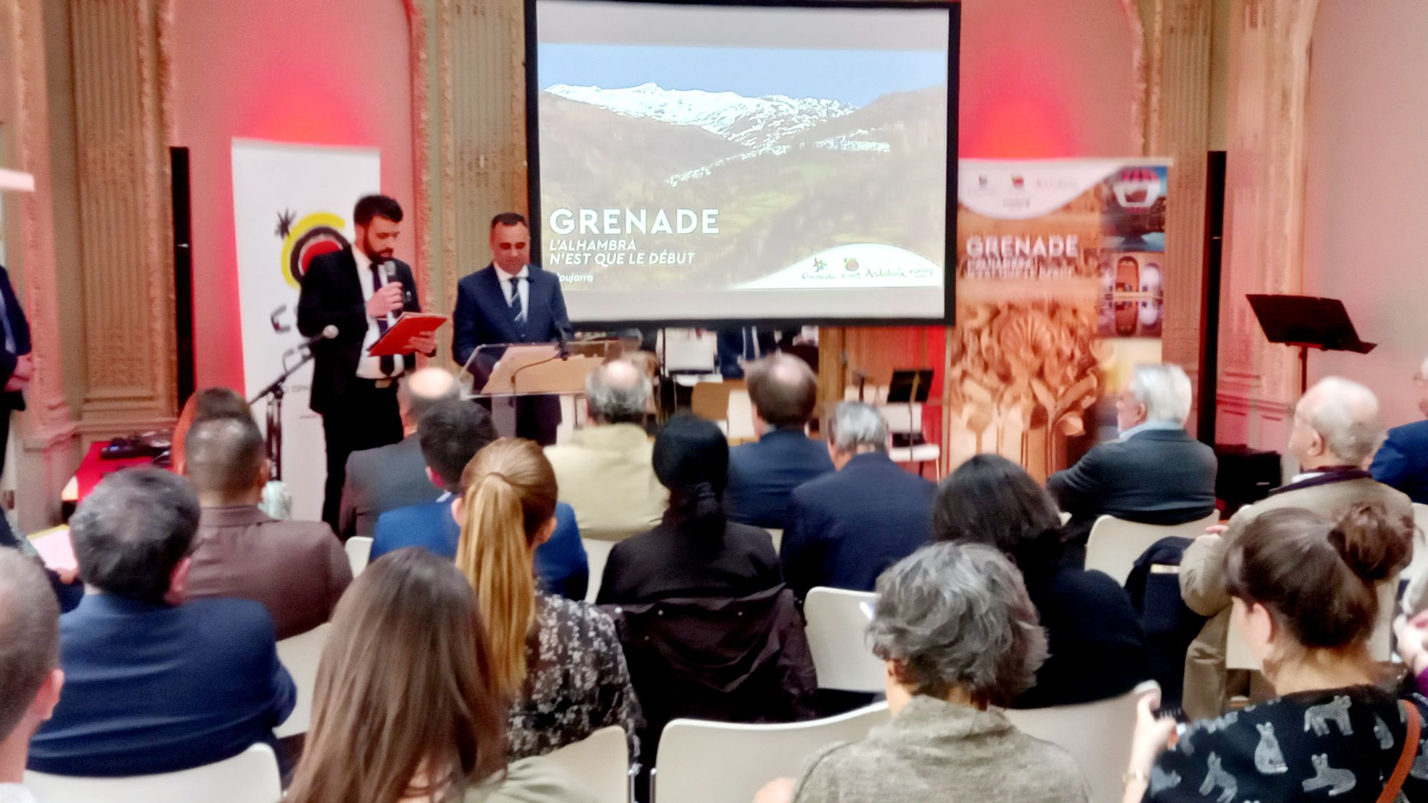 La delegación granadina encargada de acometer esta acción promocional de apoyo a la conectividad aérea ha estado encabezada por el presidente de la Diputación, Francisco Rodríguez, junto al equipo técnico del Patronato Provincial de Turismo. Ha asistido también el director del Festival Internacional de Música y Danza de Granada, Antonio Moral, que ha presentado el programa de la 73ª edición, que se celebrará entre junio y julio.Tambien estuvieron presentes el Consul General de la Demarcación Consular de Paris Javier Herrera García-Canturri,Consejero de Cultura de la Embajada de España Ignacio Diaz de la Guardia,Vicedirectora de Turespaña…y Director del Instituto Cervantes de París,José María Martinez Alonso.En los encuentros con profesionales también ha estado presente un representante de la aerolínea Vueling.