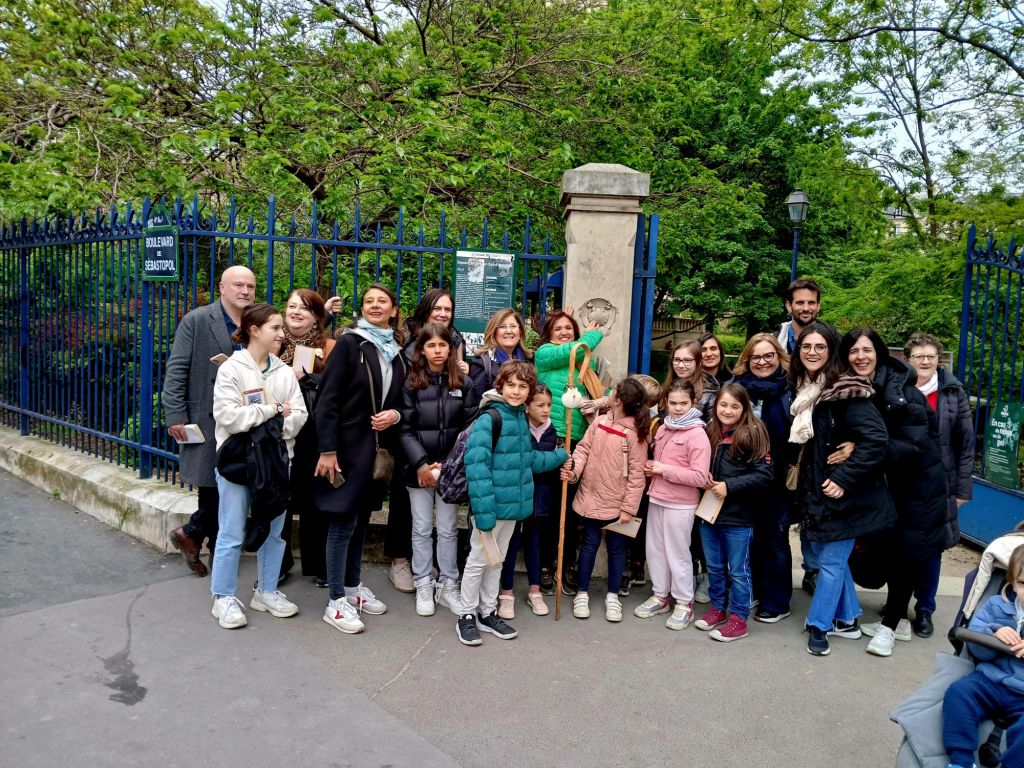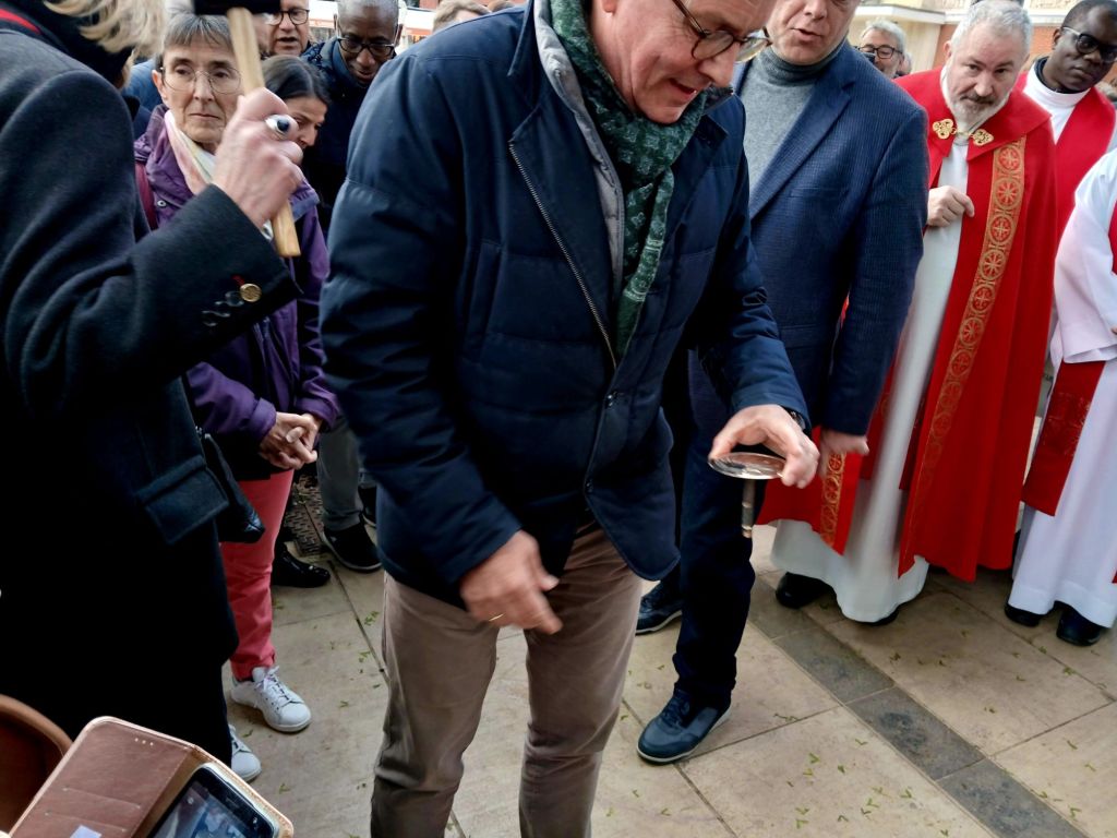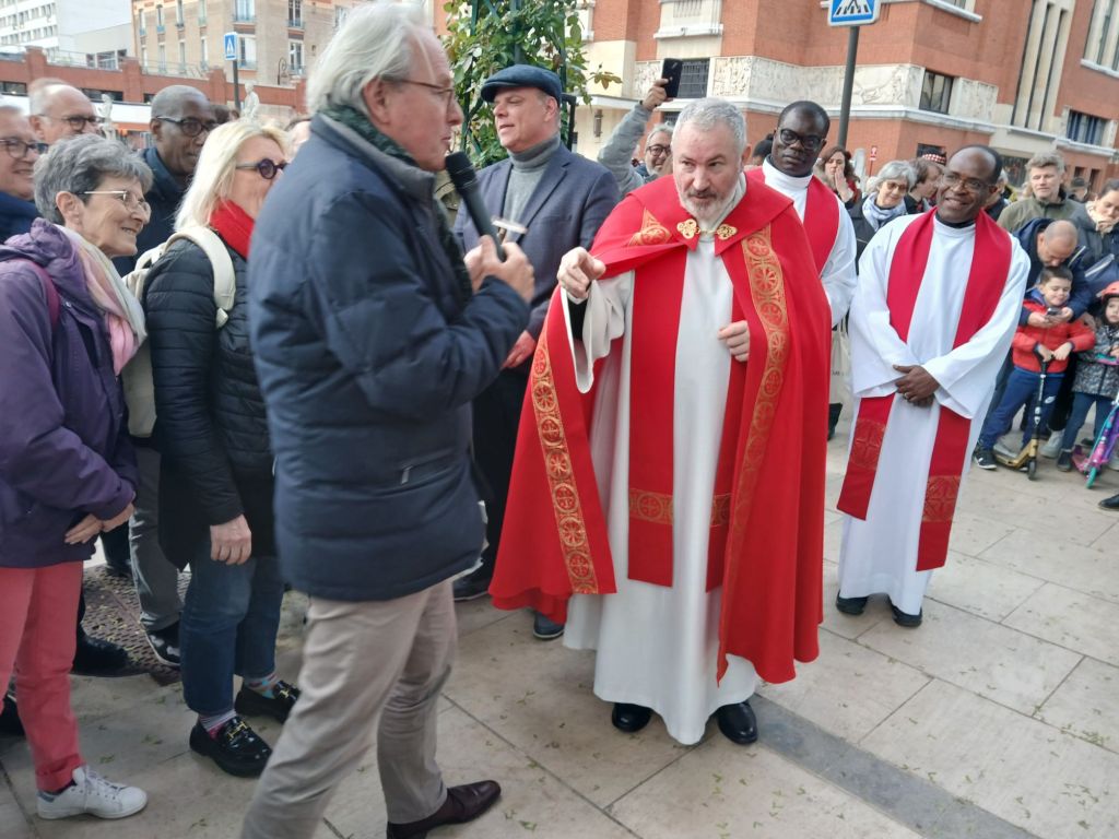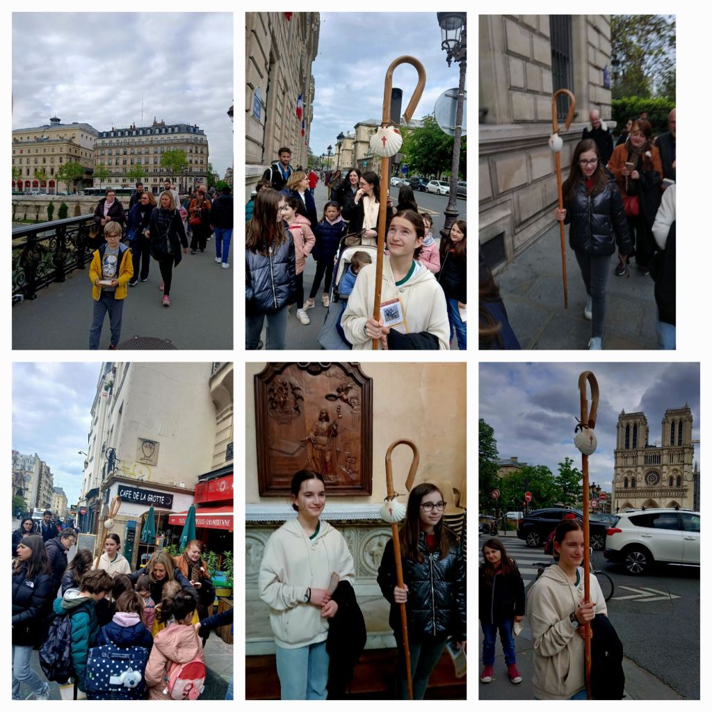 Los alumnos tambien visitaron el Museo Medival donde se pueden ver las cientos de conchas de Santiago en sus puertas y muros y en su puerta principal y en su cerradura como curiosidades nos abre las puertas el Apostól Santiago el Museo Medival fue un hospital de peregrinos a la epoca.Eduardo tambien explicó a los participantes porque los peregrinos llevan baston porque una concha y el porque de una Calabaza etc.La llega a Montrouge de los Alumnos y acompañantes coincidio con la llegada de los componentes de otra marcha que salio de la Iglesia de Haute Pas de Santiago con personas mayores en un numero de 65 acompañados por tres curas de la Iglesia católica de Santiago el Mayor de Montrouge, esta Iglesia es muy conocida por sus vidreos en los cuales se ven mas de 500 conchas de Santiago y lugar obligado para tamponar el credecial de peregrinos y cuyo Cura, Marc Ketterer, párroco de Montrouge es hijo de padres españoles de Barcelona y colaborador destacado de esta 1° Fiesta de la Vieira (Coquille)….Sigue despues de las fotos