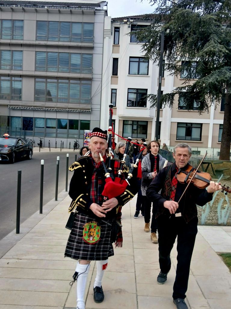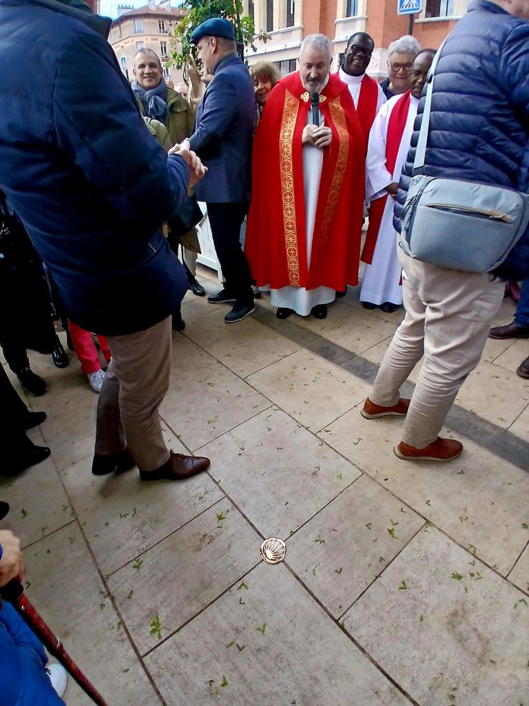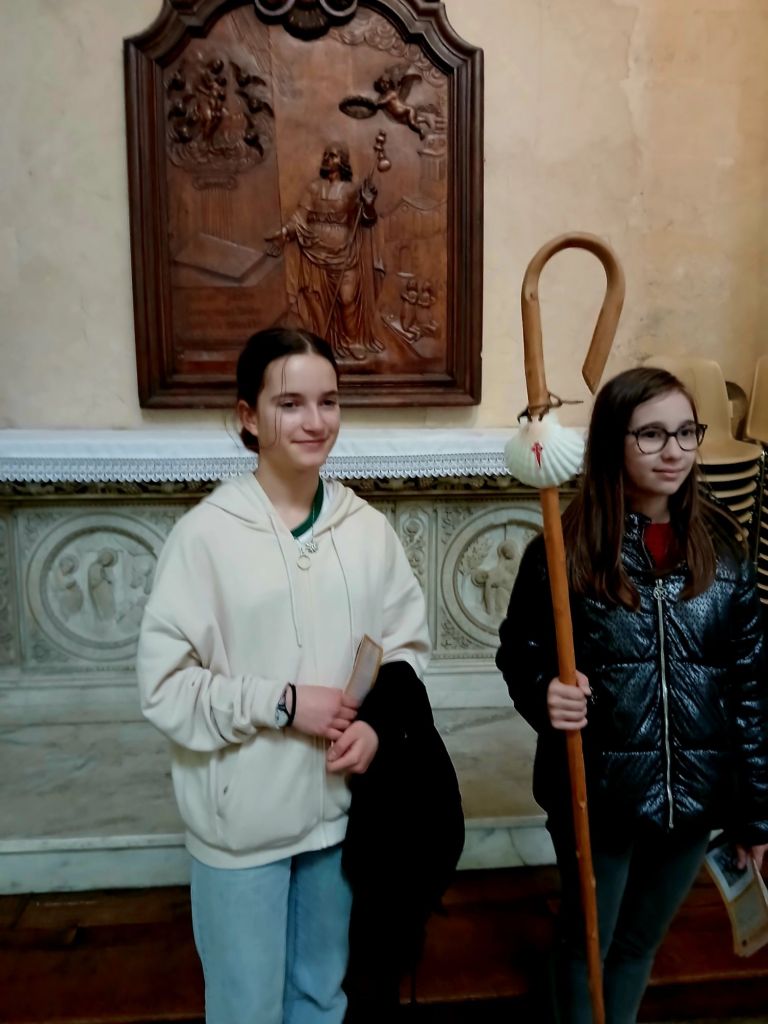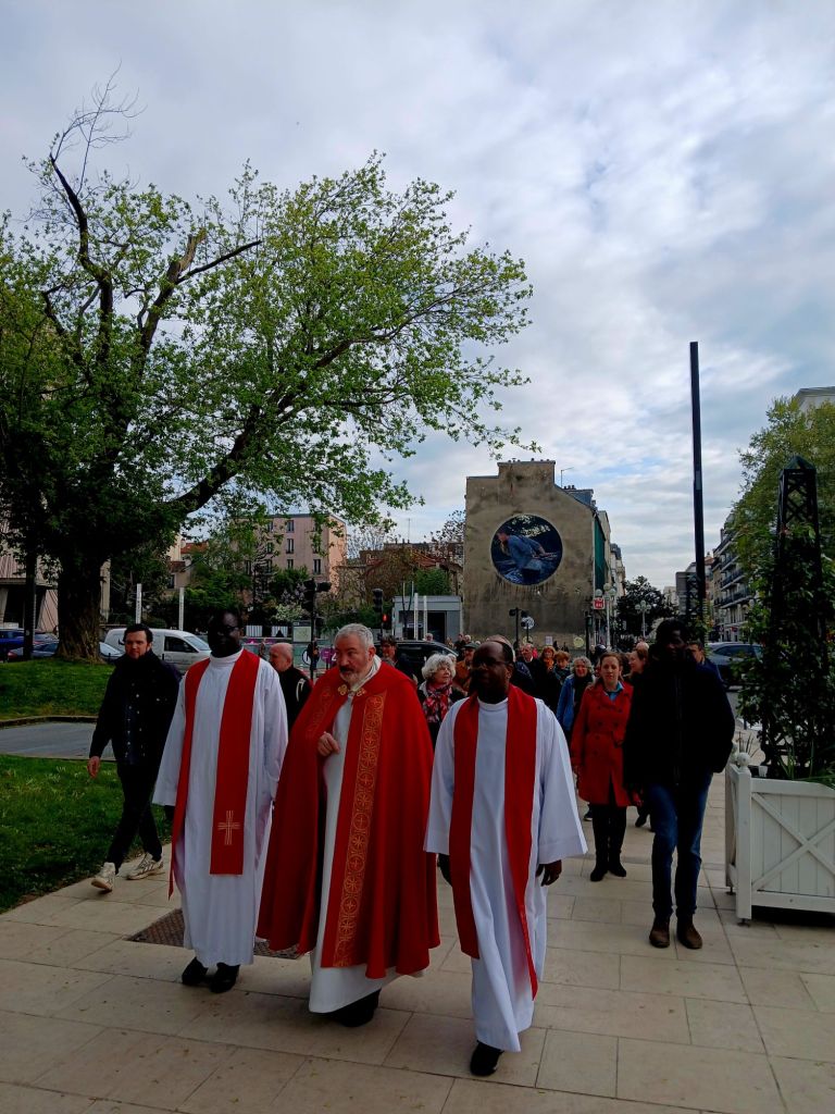Los alumnos tambien visitaron el Museo Medival donde se pueden ver las cientos de conchas de Santiago en sus puertas y muros y en su puerta principal y en su cerradura como curiosidades nos abre las puertas el Apostól Santiago el Museo Medival fue un hospital de peregrinos a la epoca.Eduardo tambien explicó a los participantes porque los peregrinos llevan baston porque una concha y el porque de una Calabaza etc.La llega a Montrouge de los Alumnos y acompañantes coincidio con la llegada de los componentes de otra marcha que salio de la Iglesia de Haute Pas de Santiago con personas mayores en un numero de 65 acompañados por tres curas de la Iglesia católica de Santiago el Mayor de Montrouge, esta Iglesia es muy conocida por sus vidreos en los cuales se ven mas de 500 conchas de Santiago y lugar obligado para tamponar el credecial de peregrinos y cuyo Cura, Marc Ketterer, párroco de Montrouge es hijo de padres españoles de Barcelona y colaborador destacado de esta 1° Fiesta de la Vieira (Coquille)….Sigue despues de las fotos