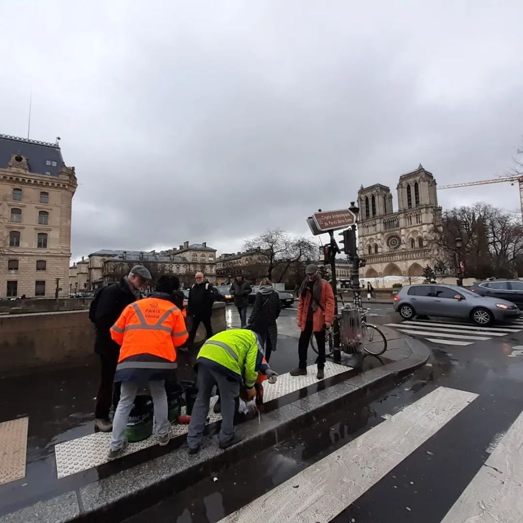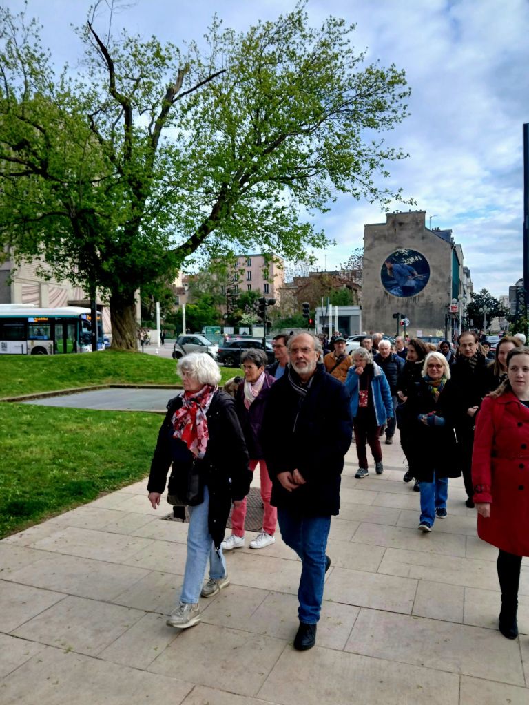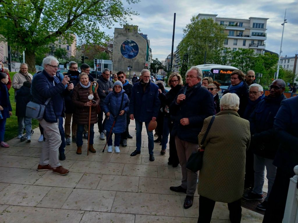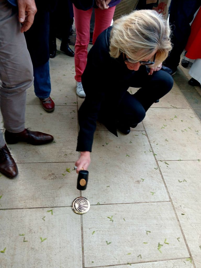 El Viernes 26 comenzo con una marcha desde la Torre de Santiago hasta la ciudad de Montrouge de un recorrido de 7km,con los alumnos profesores y padres y directora Sara Zafrilla de las Aulas de Clases y Cultura Españolas tambien conocida como ALCE,acompañados por Eduardo. gallego y miembro del equipo de señalizacion del Camino, para hacerlo mas visible,en la region parisina como lo demuestran las casi 800 Conchas que señalizan este camino en Isla de Francia, de las cuales 330 en Paris,Canal Saint Denis, Parque de la Villete,en el barrio de Paris 19ème Saint-Jacques Paris districto 5ème,districto Paris 14ème y estas 79 imnaguradas el 26 de abril en esta ciudad de Montrouge distante de la Tour Saint-Jacques de 7km,Eduardo les fue enseñando todo lo relacionado con el camino así como curiosidades y monumentos a vistar,en esta etapa,entre ellos un Reloj Solar de Salvador Dalí en el Número 32 de la Rue Saint Jacques muy cerquita de la Cátedra Notre-Dame) El Reloj Solar de Dali en forma de Concha de Santiago que representa la cabeza de una mujer con ojos azules la ofreció Dalí, al ayuntamiento de Paris en 1960.