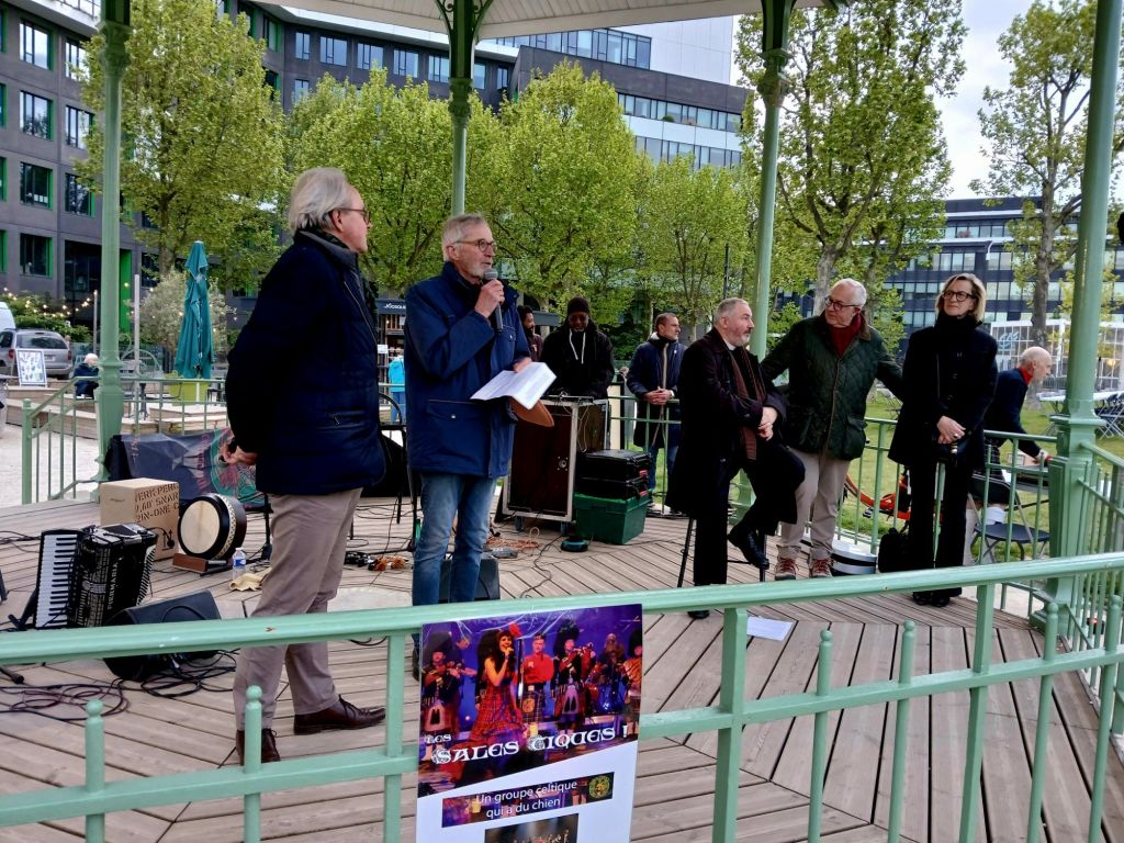 A la llegada de la Marcha al ayuntamiento de Montrouge les recibio :Étienne Lengereau, alcalde de Montrouge; Colette Aubry, teniente de alcalde de Cultura y Patrimonio y gran impulsora de esta Fiesta. Despues de un pequeño discurso,tuvo lugar la instalación de la concha numero 79, delante mismo del ayuntamiento bende ida por Marc Ketterer, párroco de Montrouge,A continuacion todos los aistentes mas de 300 se dirigieron a pie desde el ayuntamiento Montrouge siguiendo las conchas hasta el parque Jean-Loup Metton, acompañados pour un grupo de musica escocesa a su llegada otras personas esperabam a los marchadores par abrir oficialmente la fiesta popular donde se pudo degustar las famosas vieiras en diferentes formas de preparacion,Crepas (filloas)Ostras sidras y vinos todo esto en una muy buena anbiencia y musica el Alcalde anunció Que esta Fiesta se organiza todos los años .