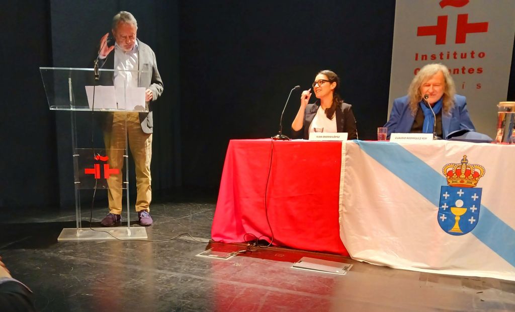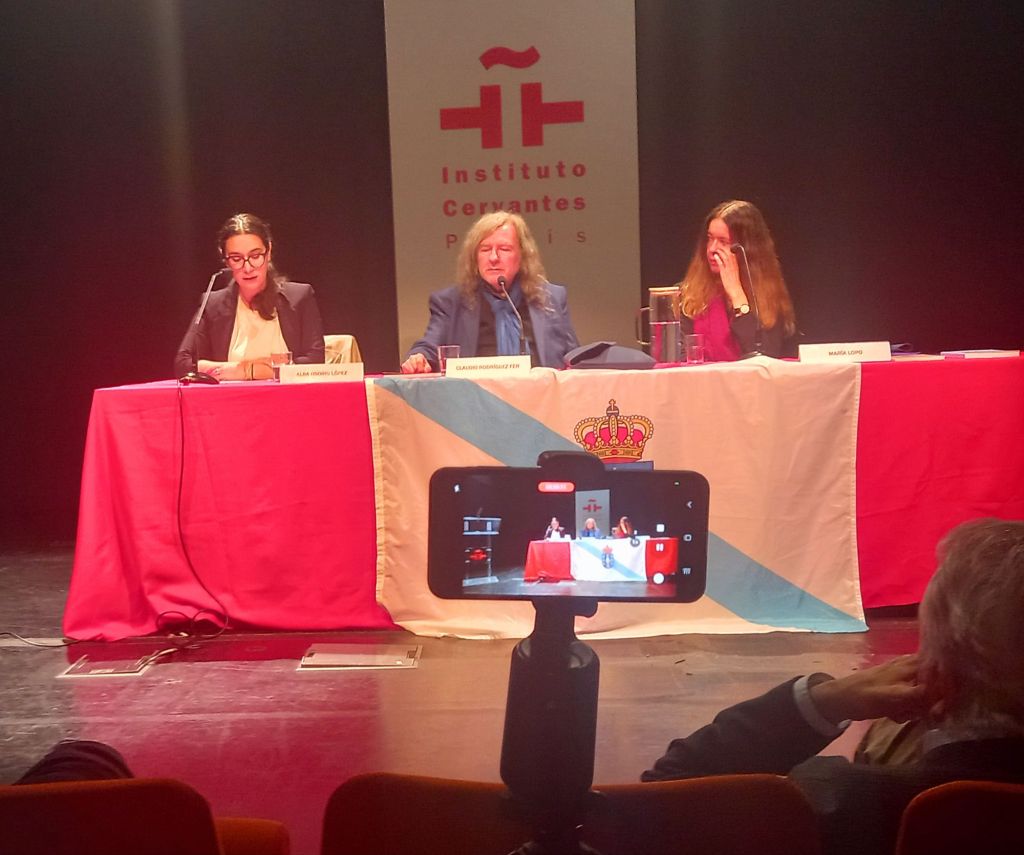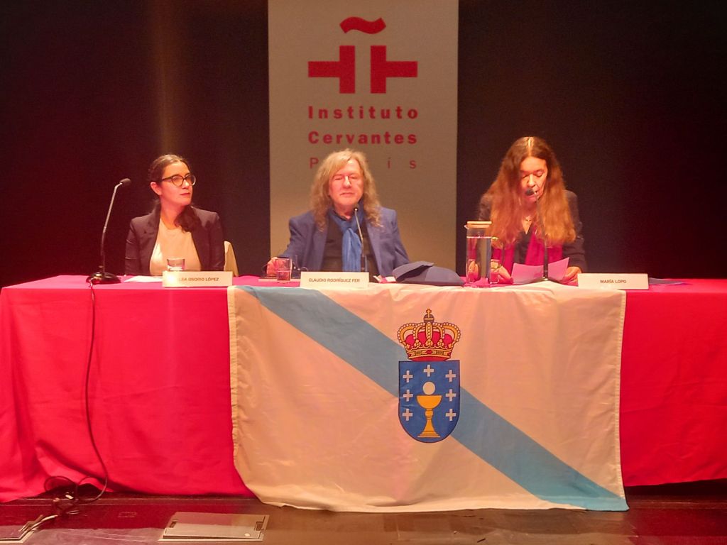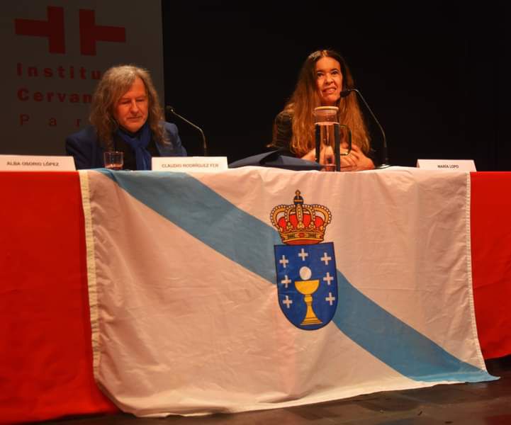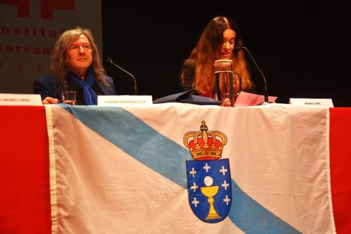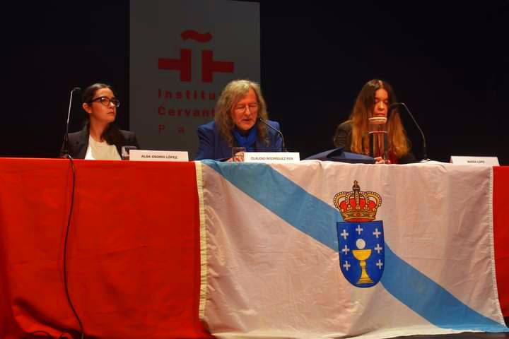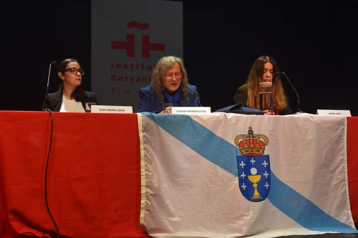 Alba Osorio Lectora del Centro de Estudios Galegos de la Universidad La Sorbonne, presento la obra de Ramiro Fonte y leyo poemas de Ramiro Fonte en gallego