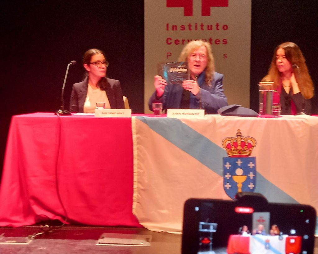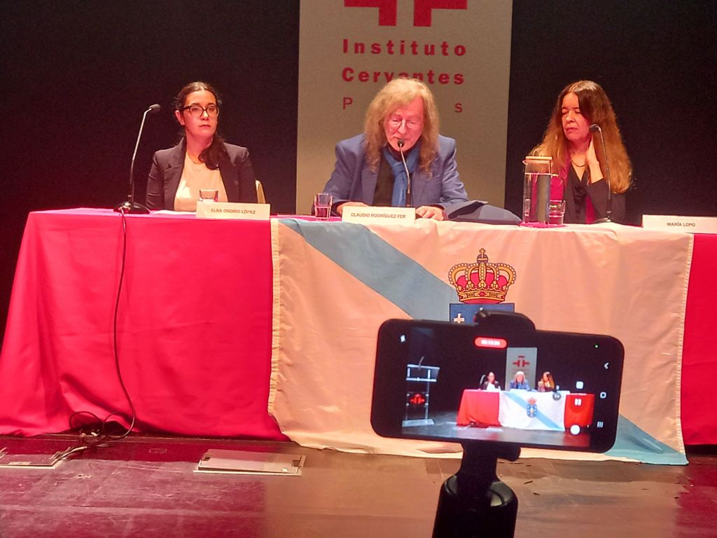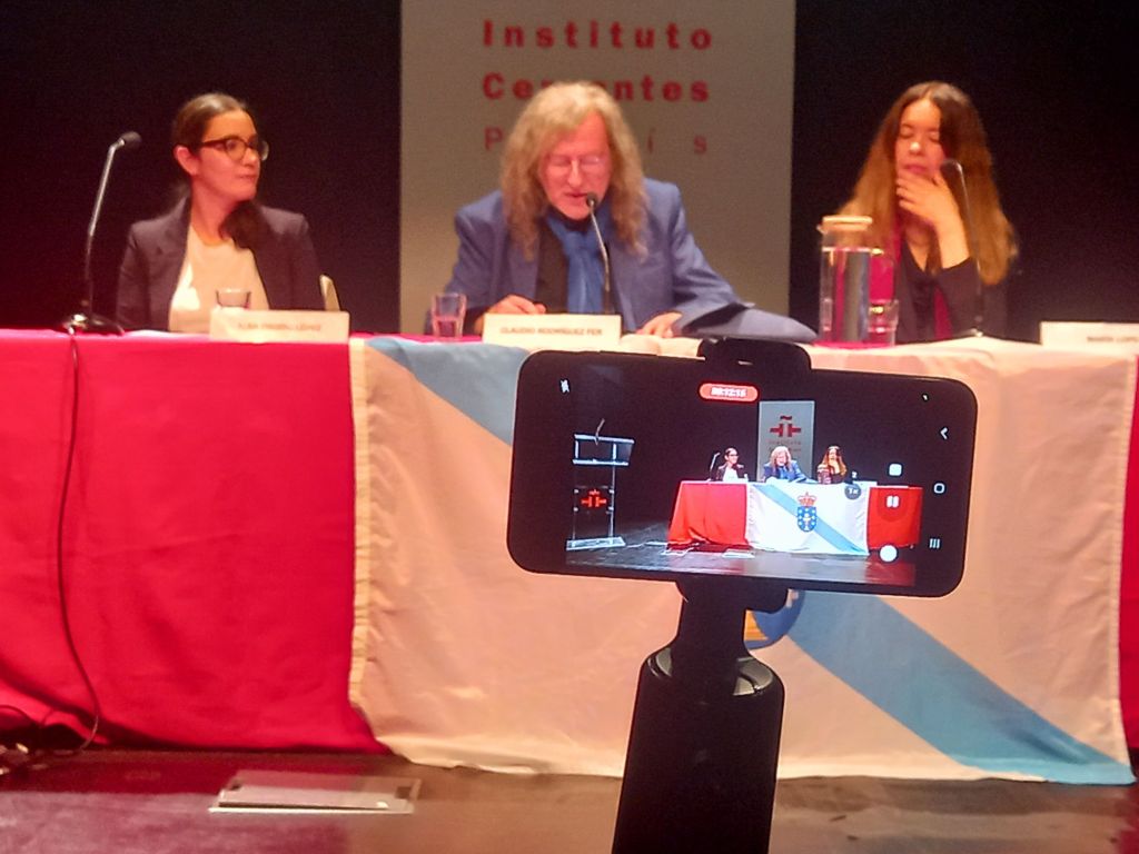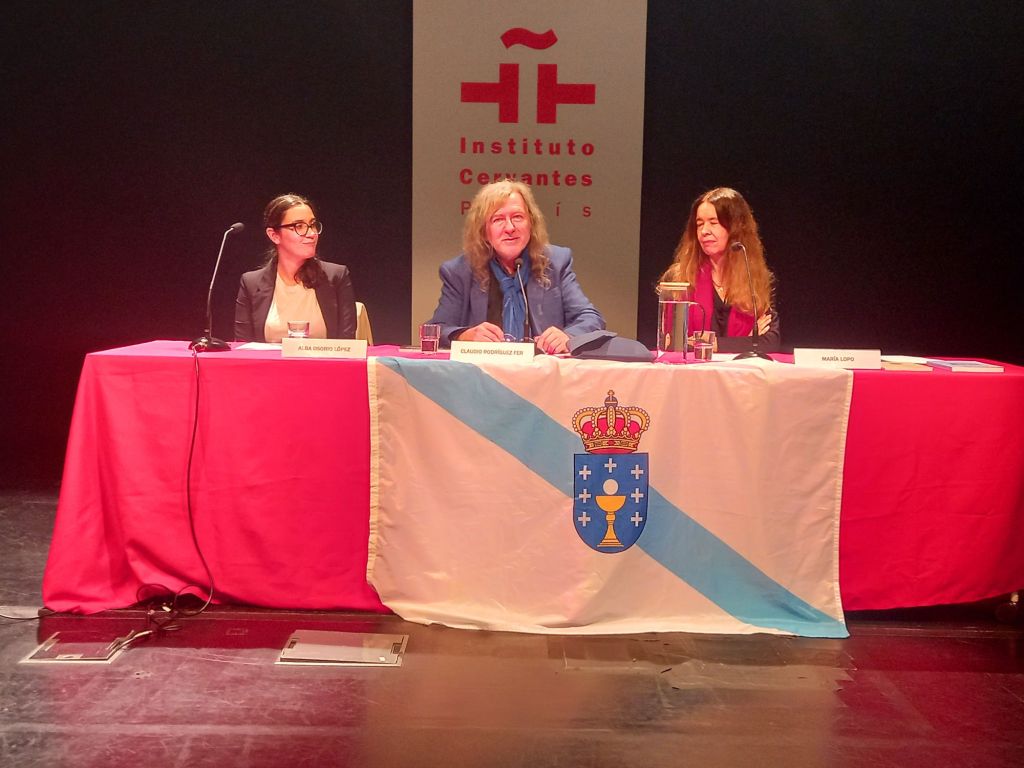 Alba Osorio Lectora del Centro de Estudios Galegos de la Universidad La Sorbonne, presento la obra de Ramiro Fonte y leyo poemas de Ramiro Fonte en gallego