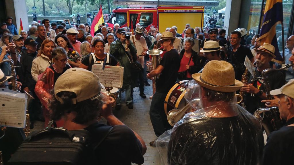 Al final de la ceremonia,se hizo una marcha,hacia el ayuntamiento de Paris,el mismo ayuntamiento al que llegaron y liberaron los hombres de la Nueve un 24 de agosto de 1944 a kas 21h21 precisas hora en que sonaron todas juntas las campanas de París como lo hicieron 80 años despues tal dia como este 24 agosto 2024 a la lusla hora la marcha estuvo precedida por la Charanga Ventolin de Gijón Asturias, En el Ayuntamiento. Se unieron con las demás bandas en la avenida Victoria para entrar en la explanada del Hôtel de Ville.