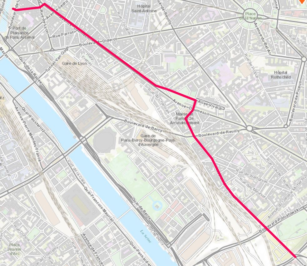.A partir de la pasarela de Mornay, el camino hacia Santiago de Compostela en el distrito XII une la Porte de Charenton, cruzando la avenida Daumesnil y su Viaducto de las Artes, la pasarela André Léo que domina el jardín de Reuilly – Paul Pernin, la calle infantil Bignon y la rue de Charentón. Estos 3,5 kilómetros de señalización formarán parte de los más de 1.500 kilómetros que conectan la Torre de Saint Jacques con Santiago de Compostela.