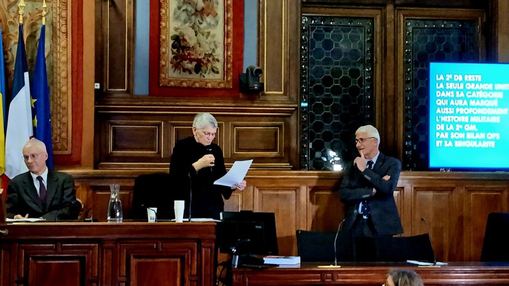 La presentación corroo a Cargo fe Véronique Salou presidenta de la Asociación 24-agosto-1944 que hizo la presentación del libro y de los intervinientes en este acto al que acudio numerso publico que siguió con mucha atención las intervenciones de :General Jean Paul Michel antiguo presidente de la Asociación de la Casa de Ancianos de la 2e DB,en esta intervención el General Jean Paul Michel que hizo una intervención sobre lo que fue la 2e Division Blindada