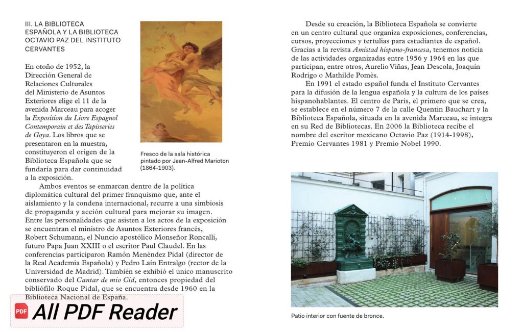 edificio del once avenida Marceau el sede del Instituto Cervantes actualmente sede del Instituto Cervantes está compuesta por fachadas y cubiertas la planta baja la escalera y su jaula antiguo salón de bailes situada en la planta superior inscripción por orden de seis de septiembre de 2012 historia la decoración interior muy cuidada intacta así como la presencia de un gran salón de baile con paredes revestidas de espejos hacen de este edificio construido en 1883 por el arquitecto Paul Dechard, ejemplo hoy raro de la arquitectura y de la decoración de la Tercera República este antiguo Hotel alberca actualmente la biblioteca del Instituto Cervantes los períodos de construcción de este edificio datan del cuarto siglo cuarto del siglo XIX el arquitecto del proyecto fue the charlpol y el pintor Marc Jam François Marion construye mil ochocientos sesenta y tres por Paul de Char