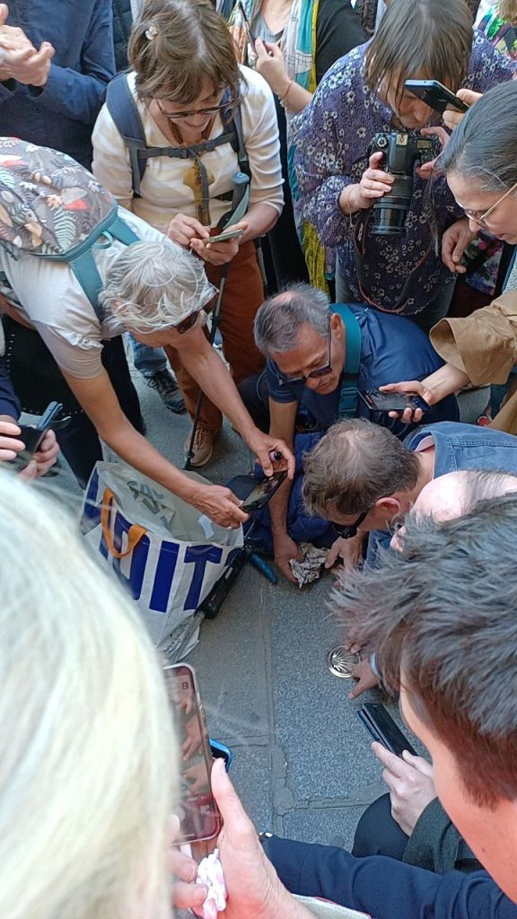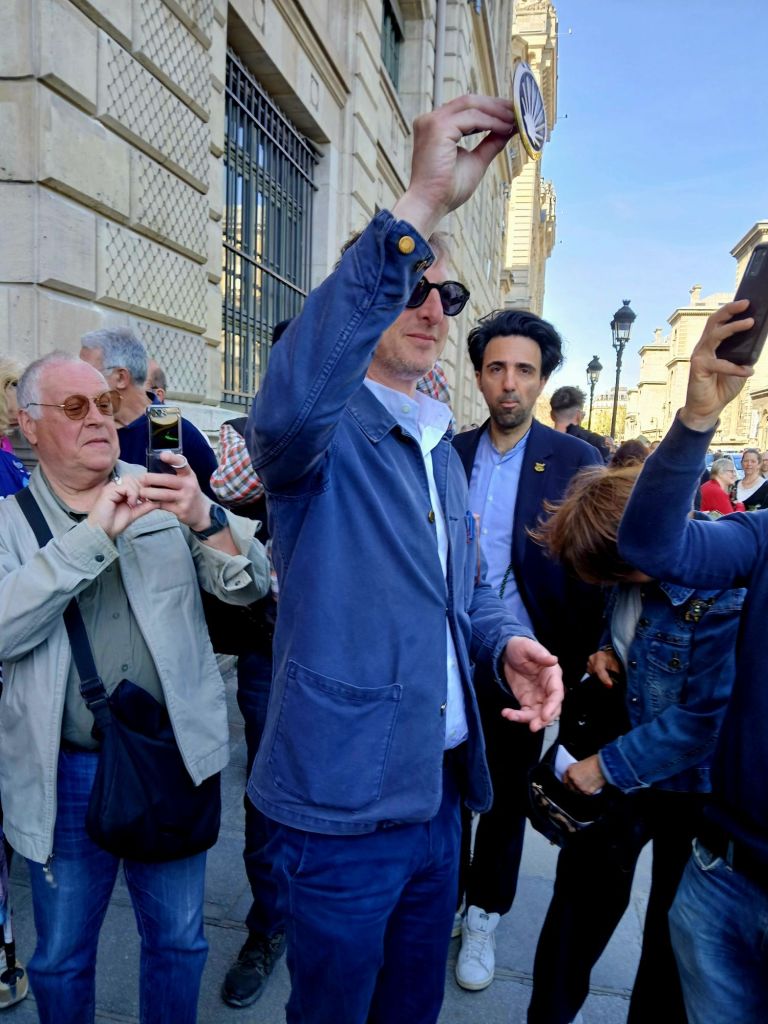 La pose de ces indicateurs — des coquilles en bronze, symbole européen du Chemin — s’est déroulée ce dimanche, avec une marche qui a commencé au parc de la Villette pour se terminer sur l’Île de la Cité, l’île de la Seine où se trouve la cathédrale Notre-Dame.