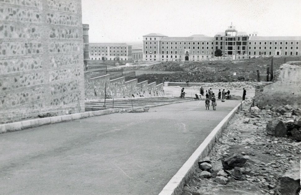 Allí bajando y estaba en las afueras de Toledo, el día que bajábamos al al hospital, había un hospital, allí estaba el hospital de Toledo, entonces bajábamos por unas cuestas y luego pues atravesábamos el puente y luego teníamos que subir a Toledo, si no queríamos, si queríamos subir pronto, teníamos que subir lo menos cien escalones y si no había que dar la vuelta. Y la cárcel estaba bajando después,subía y luego bajaba.