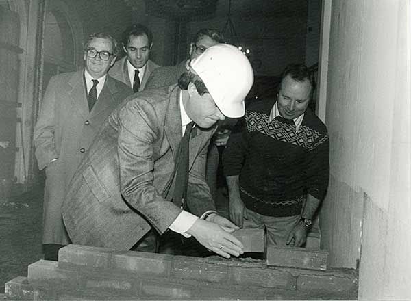Comienzo de las obras de restauración del Colegio de España con la presencia de José María Maravall, Ministro de Educación y Joan Reventós, Embajador de España en Francia, 4 de diciembre de 1985