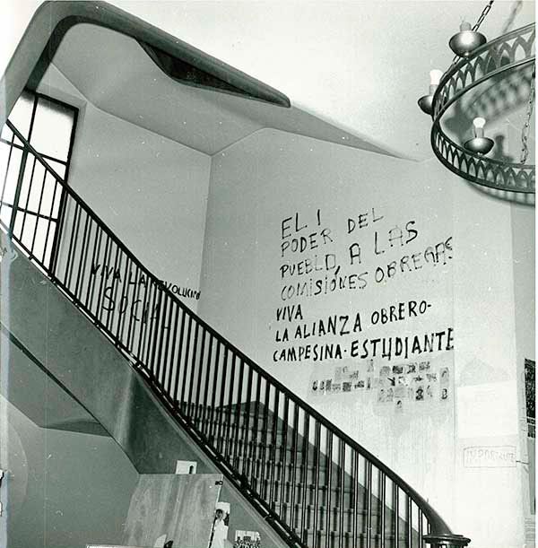 En 1975, el descontento de los estudiantes españoles es cada vez más evidente. Se vuelven a producir dos ocupaciones del edificio en el intervalo de diez días. La policía interviene desalojando a los ocupantes. Unos meses más tarde, un incendio deteriora aún más el estado del Colegio.