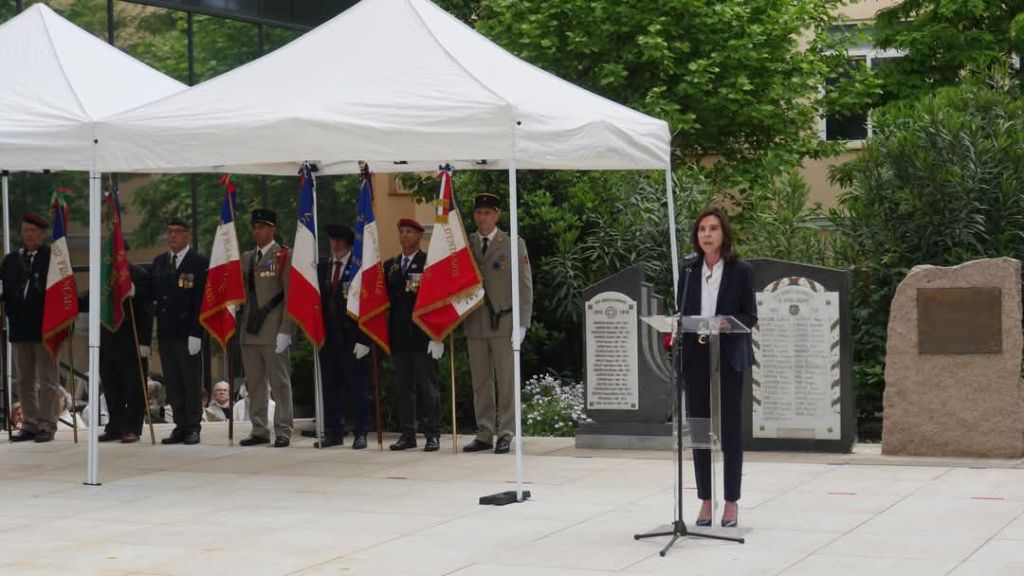 En Madrid, la ceremonia, llevada a cabo por la Misión de Defensa cerca de la Embajada de Francia en España y el Consulado General de Francia en Madrid, en colaboración con la Unión Francesa de Veteranos Residentes en España (UFACRE) y el Comité Madrid de Souvenir Francés, fue presidida por el Embajador de Francia en España, Kareen Rispal