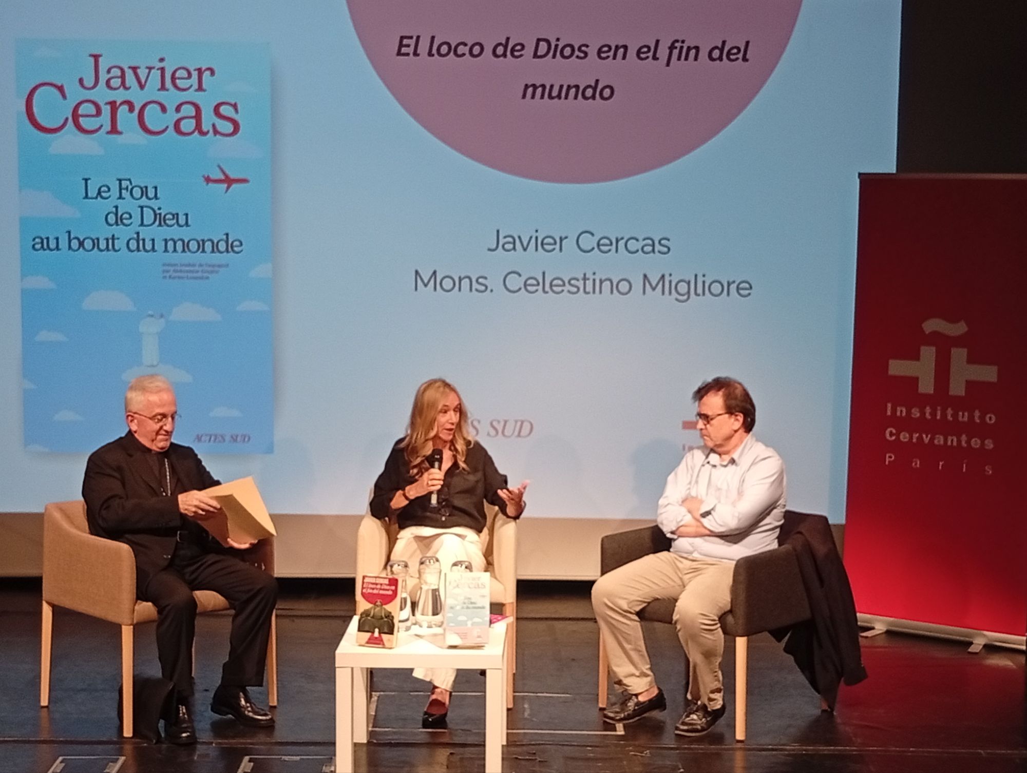 Estoy extremadamente contento con esta elección. Ya lo conozco un poco porque antes era prefecto para la nominación de los obispos El Cervantes d París, con una sala repleta de publico y en colaboración con Éditions Actes Sud,organizaron el 8 de septiembre un diálogo entre el nuncio apostólico,Mons. Celestino Migliore y el escritor Javier Cercas con motivo de la presentación de la traducción al francés de su último libro El loco de Dios en el fin del mundo.En un debate abierto y excepcional entre el embajador de la Santa Sede en Franciay el escritor español, el primero a quien el Vaticano abre sus puertas y concede un acceso privilegiado al papa Francisco. La obra nace a partir del viaje que Javier Cercas realizó junto al papa Francisco a Mongolia.A través de este viaje por las periferias —sean geográficas, narrativas o existenciales—, esta novela sin ficción es un relato irresistible sobre el mayor misterio de la historia de la humanidad: . ¿tras la muerte otra vida nos aguarda? Tras el diálogo Mons. Migliore y Javier Cercas respondieron a las preguntas de los espectadores .El encuentro , fue moderado por la periodista Marieta Frías La resurrección de la carne y la vida eterna: Reflexiones sobre el Papa Francisco