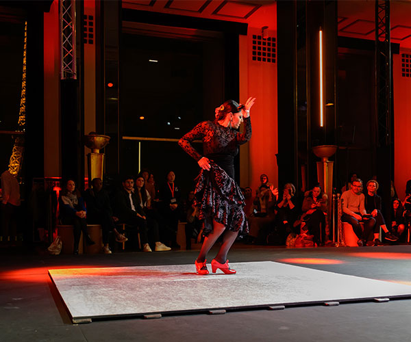 Résumé : Andrés Marín et Ana Morales, deux figures majeures de la scène flamenca, s’inspirent de La Divine Comédie et des pas de Dante poursuivant Béatrice pour créer un spectacle figurant le paradis et le purgatoire. Les pas de danse, le chant flamenco et les notes de guitare s’unissent entre tradition et audace, inspirés des pratiques sacrées et populaires, religieuses et païennes de la culture andalouse.