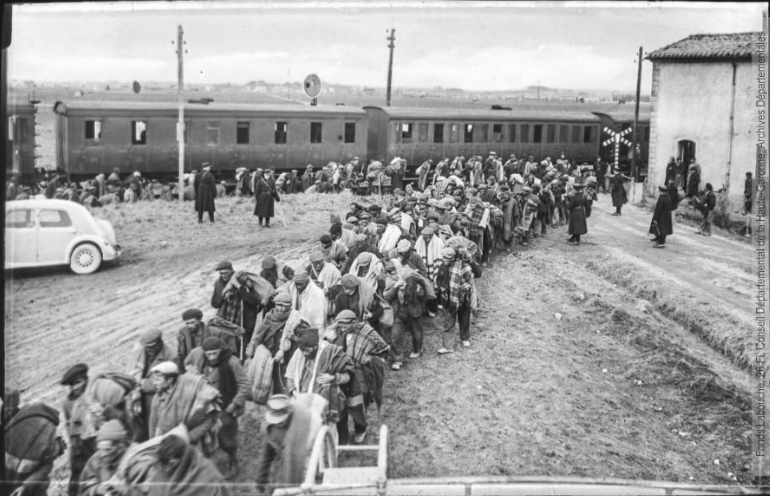 https://francearchives.gouv.fr/es/article/239450434. Desde principios del siglo XIX, ciudadanos españoles optan por exiliarse a Francia, por motivos políticos o económicos. Esta inmigración alcanza su punto culminante en los años 1930, ya con las primicias de la Guerra Civil en 1931 hasta la Retirada y el fin de las hostilidades en 1939.El exilio El rey Alfonso XIII, los monárquicos y los eclesiásticos son de hecho los primeros en encontrar refugio en Francia tras la proclamación de la Segunda República en 1931; les siguen los anarcosindicalistas en conflicto con el Gobierno republicano, luego los propios republicanos tras el golpe de Estado militar de julio de 1936 y el estadillo del conflicto. El 26 de enero de 1939, la caída de Barcelona en manos de los nacionalistas incita a unos 500.000 hombres, mujeres y niños a huir precipitadamente con destino a Francia y a los países del Magreb. Si las primeras oleadas migratorias entre 1936 y 1938 habían sido anticipadas, la Retirada – o éxodo masivo – desborda rápidamente al Gobierno francés que nunca había enfrentado semejante aluvión de refugiados, llegados en lo más crudo del invierno a los departamentos limítrofes de la frontera con España: tras ser identificados, desarmados, vacunados y alimentados en campos de selección y clasificación abiertos en Prats-de-Mollo, Arles-sur-Tech o Le Boulou, mujeres, ancianos y niños, pero también milicianos y varones válidos, rápidamente son diseminados en 77 departamentos y alojados en casas de particulares franceses o en los locales requisados por las autoridades, cuarteles, fábricas, colonias de vacaciones, castillos, escuelas y conventos. Los heridos y los enfermos son atendidos en los hospitales y los demás refugiados, milicianos, brigadistas y civiles válidos, son legalmente internados, en virtud de dos decretos leyes promulgados en 1938, que los asimila a extranjeros indeseables (Meuse, 131M33), en campos de Languedoc-Roussillon y del Magreb bajo la dominación francesa, en condiciones extremadamente precarias. Así, el campo de Argelès-sur-Mer (Pyrénées-Orientales) se edifica a toda prisa y los refugiados duermen mientras tanto en agujeros cavados por ellos mismos en la playa azotada por los vientos y cercada por alambradas de espino; en Bram (Aude), son alojados en locales de madera, en Vernet (Ariège) en tiendas de campaña militares y suman 3.000 los que se hacinan bajo el calor en los barracones de Boghari (Argelia, antiguo departamento de Argel).