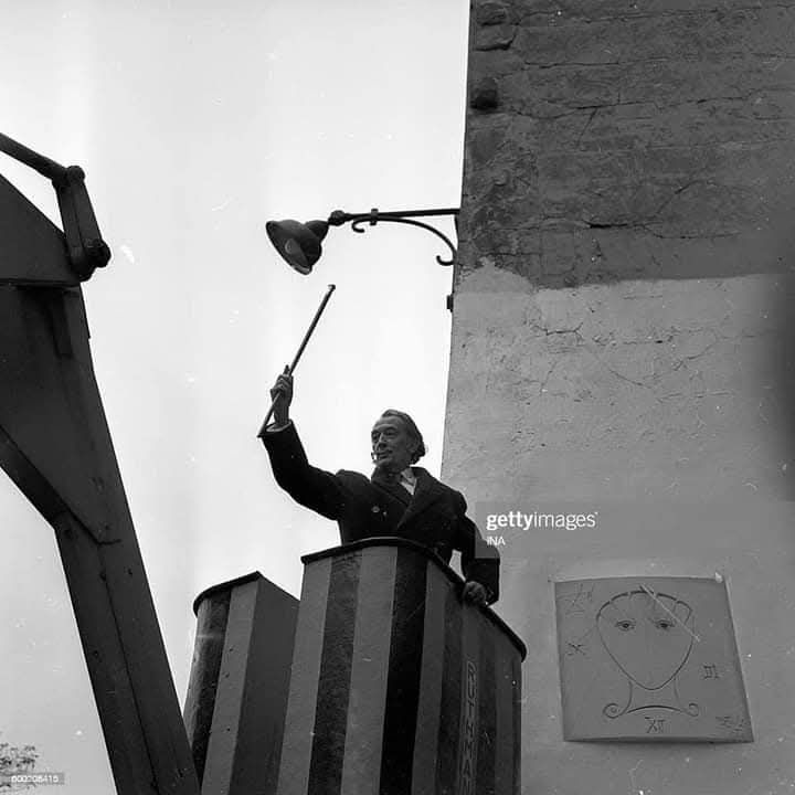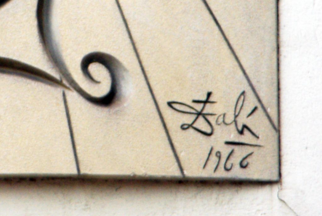 El reloj de Dalí en París fue inaugurado en noviembre de 1966 con la pompa y el boato con los que se reconocían las puestas en escena del pintor. Las crónicas cuentan que Dalí se subió a un camión con su mascota, un ocelote real, llamado Babou, para poner la firma y la fecha de la obra directamente sobre la figura en la pared. Puedes verlas en la parte inferior derecha de la figura.